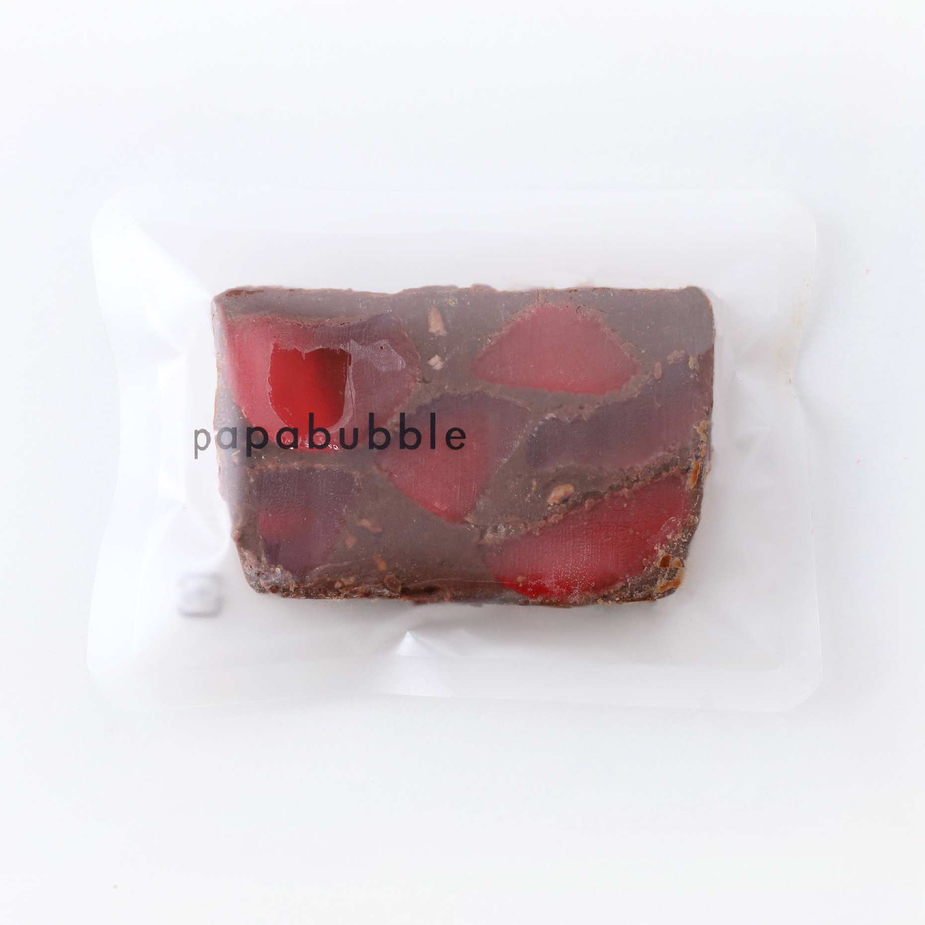 チョコレートの中にバブレッツを組み合わせた人気のグミチョコが新登場! パッケージ越しには宝石のように透けるラズベリーの赤を配置し、見た瞬間にトキメキが生まれるビジュアルです。