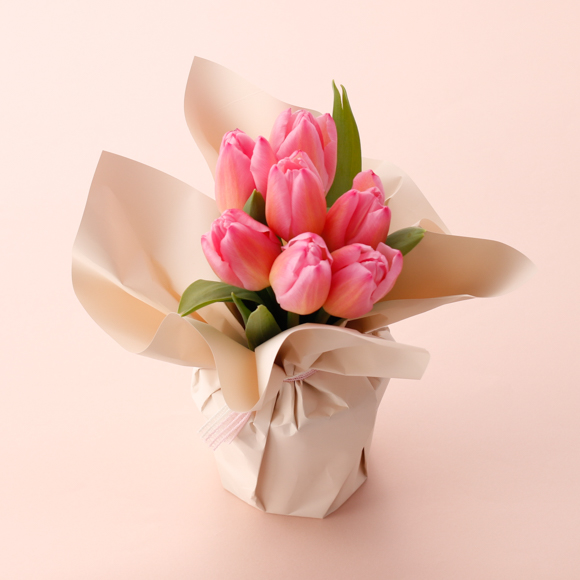 春の可愛らしさを凝縮した、チューリップのスタンディングブーケが登場。旬の彩りをおしゃれに飾れる、この時期人気のフラワーギフトです。 ※~3/31お届けまでの期間限定デザインです