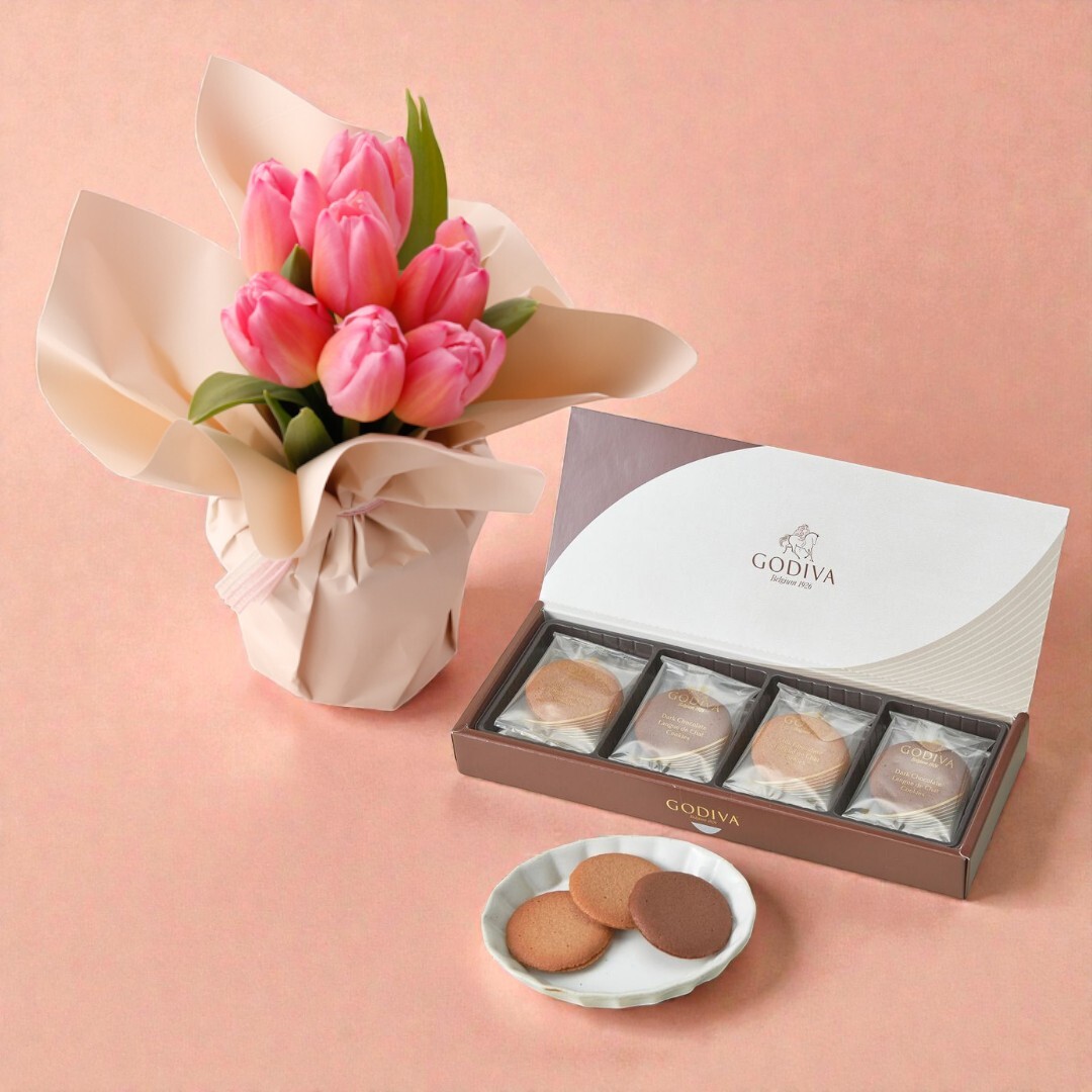 季節限定でチューリップが登場!お好みのカラーをお選びいただける生花のスタンディングブーケとタンプ人気の選べるスイーツをセットにしてお届けします。スタンディングブーケは花瓶不要で、受け取ったらそのままお部屋に飾ることのできるアレンジメント花束です。春のギフトにぴったりのセットです。