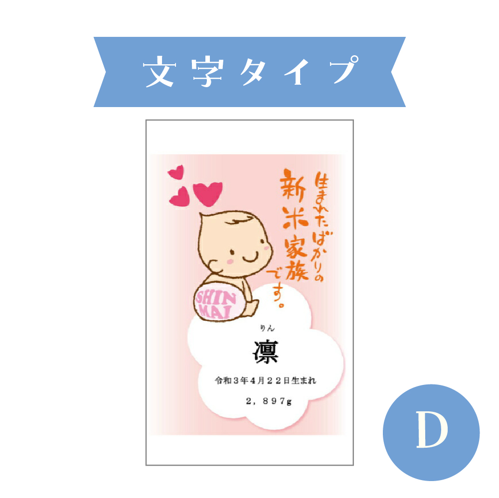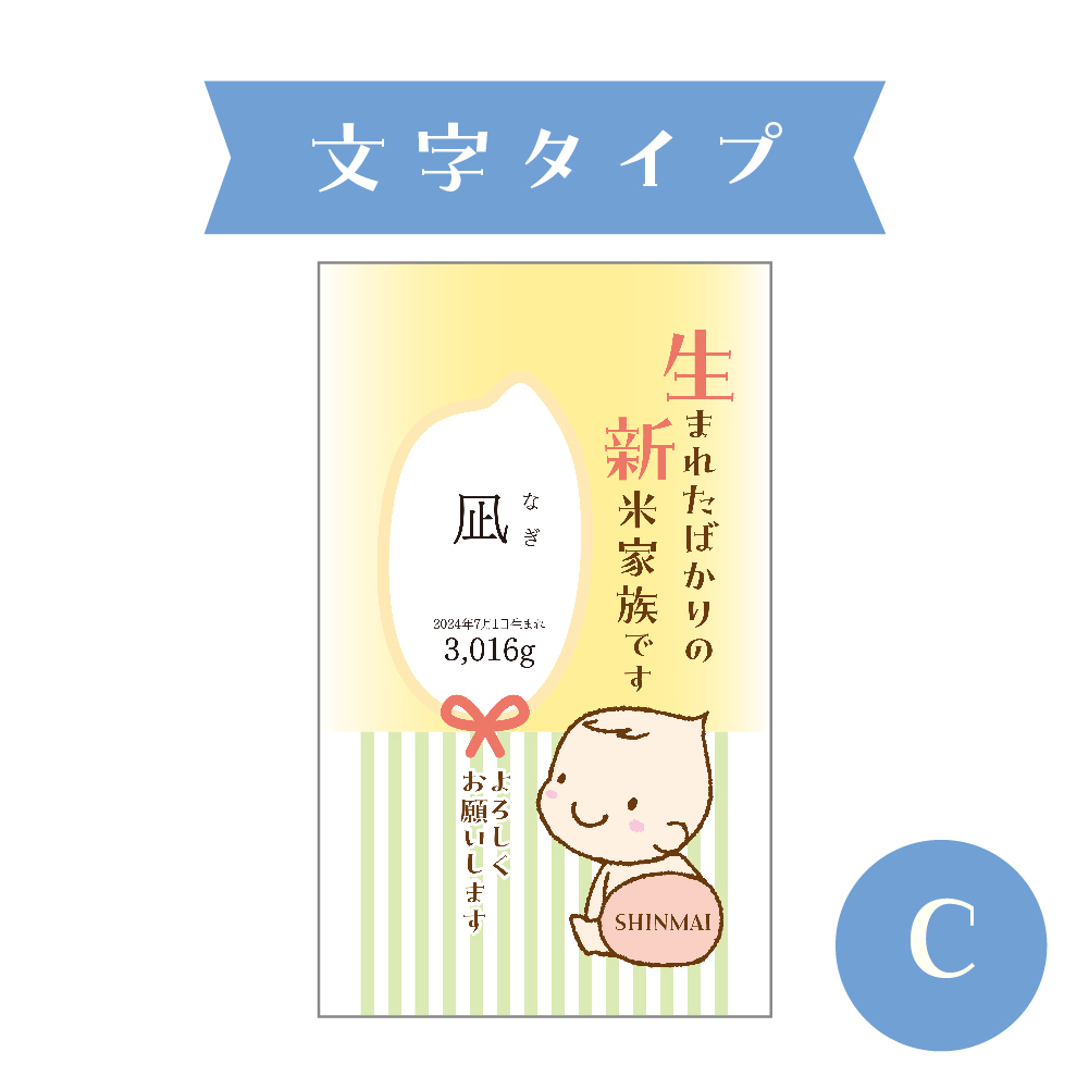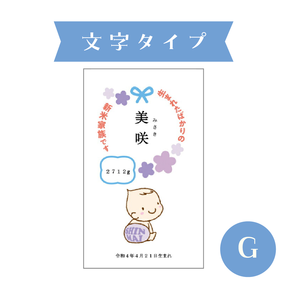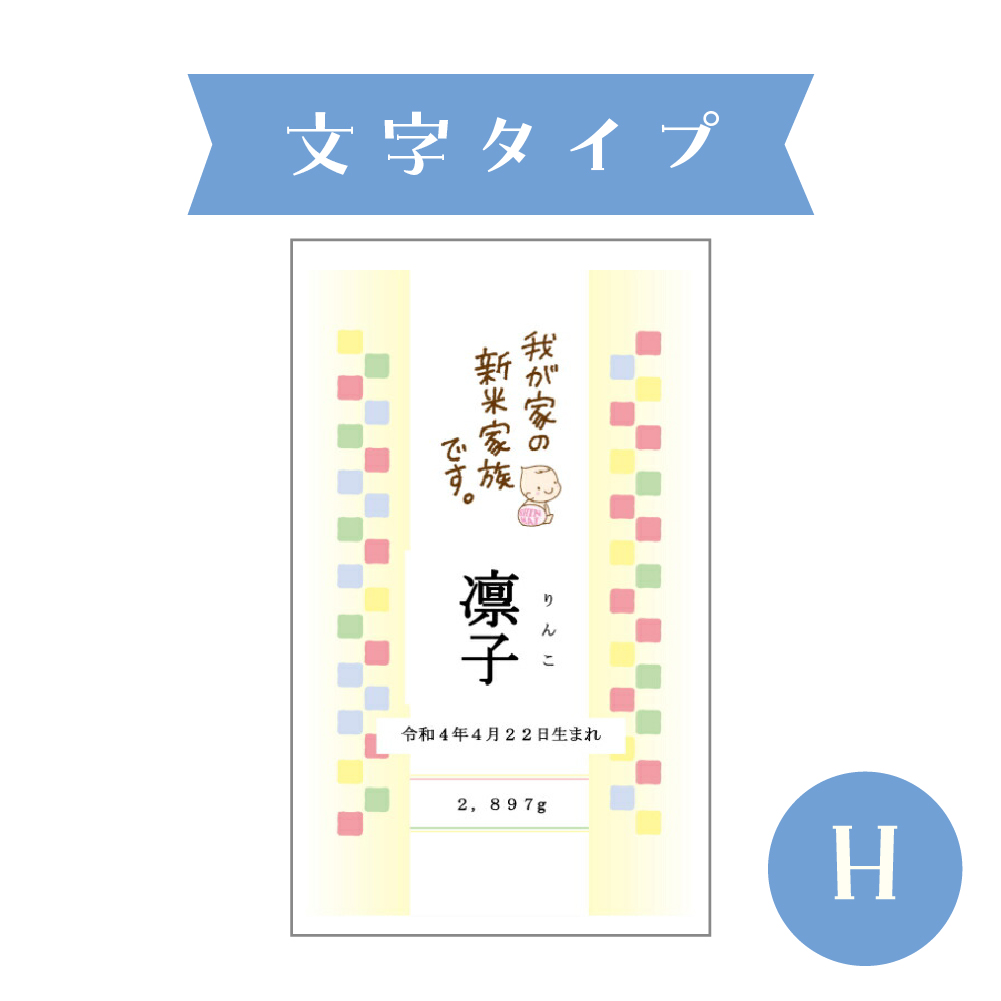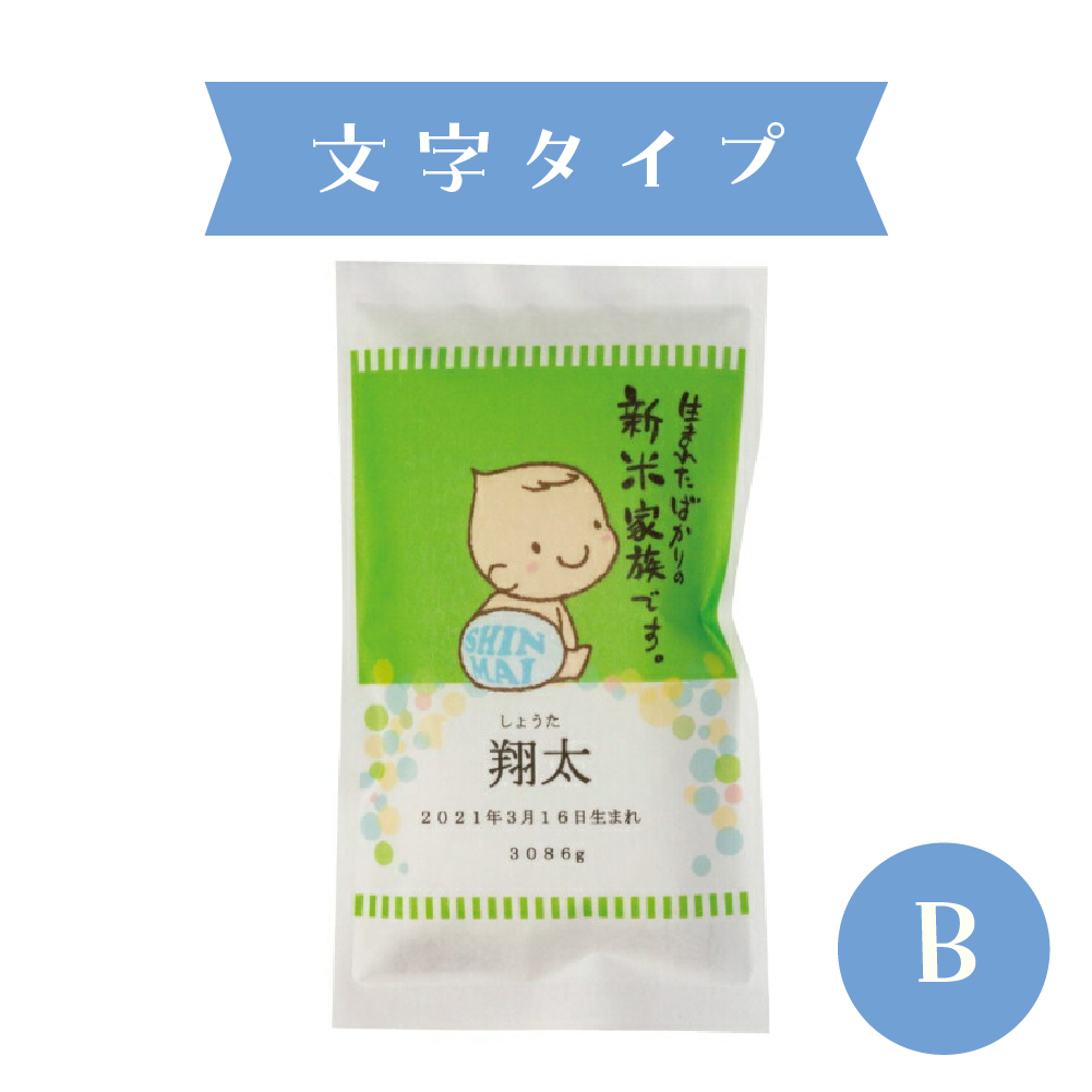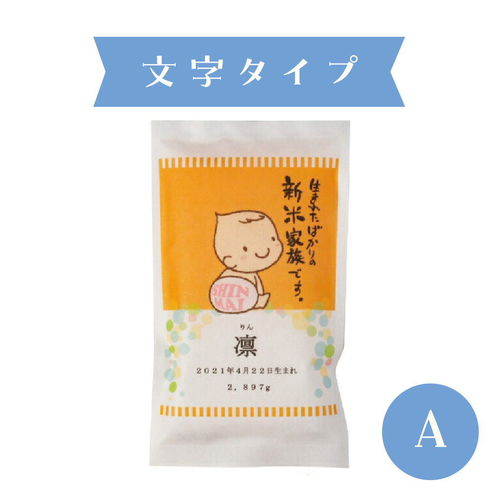 お子様のお名前を入れられるお米のプチギフトです。新潟産こしひかり300gで、出産内祝などのお配りにちょうどいいサイズ感。ご近所さんや会社上司・同僚のちょっとしたご挨拶にも最適です。