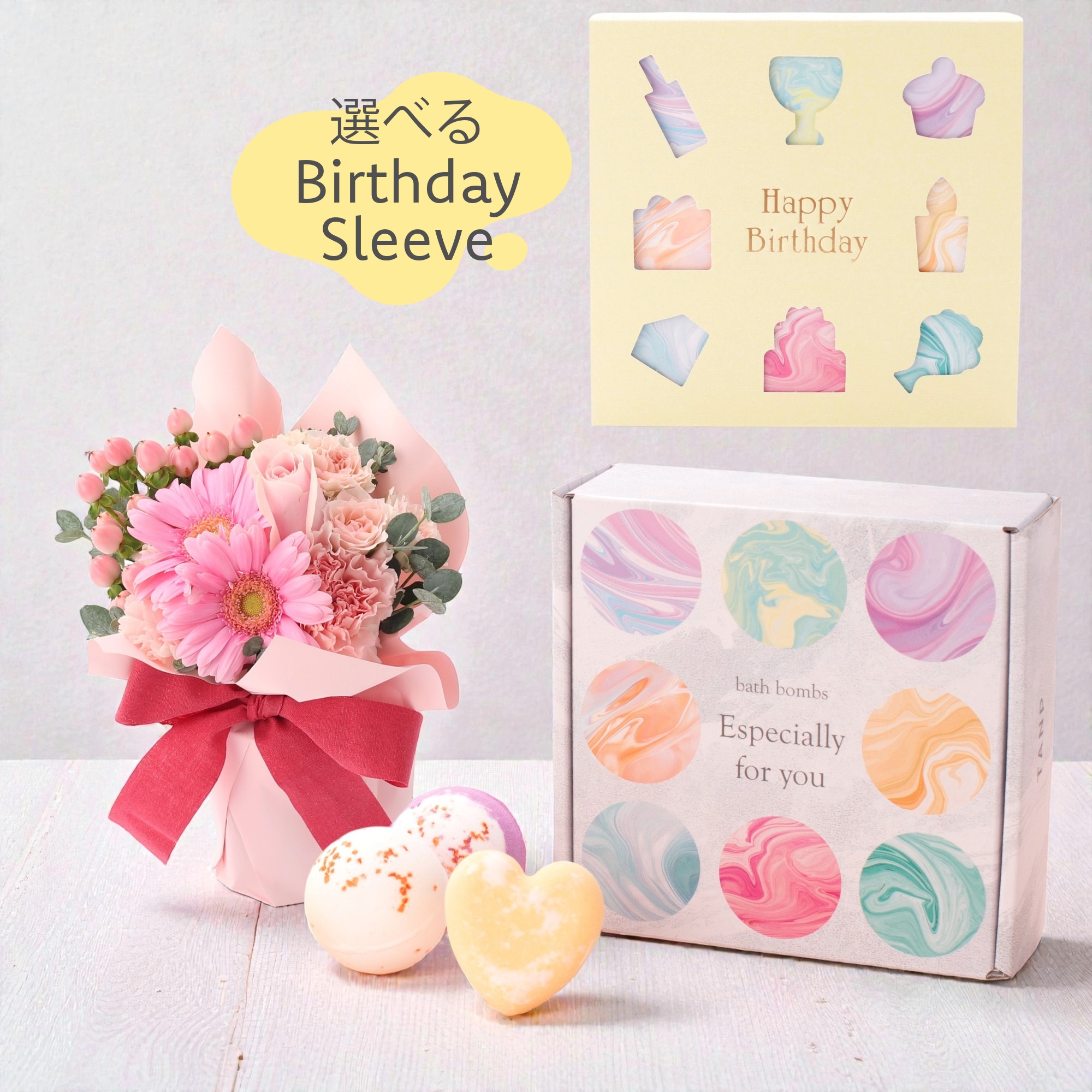 バスボムギフトに、有料で専用スリーブをお付けしてお届けします。 遊び心あふれるパッケージ仕様。 いつものお風呂が特別な思い出に変わる、特別感溢れるギフトです。 スリーブはお付けしてお届けしますので、お相手の方へそのままお渡しいただけます。