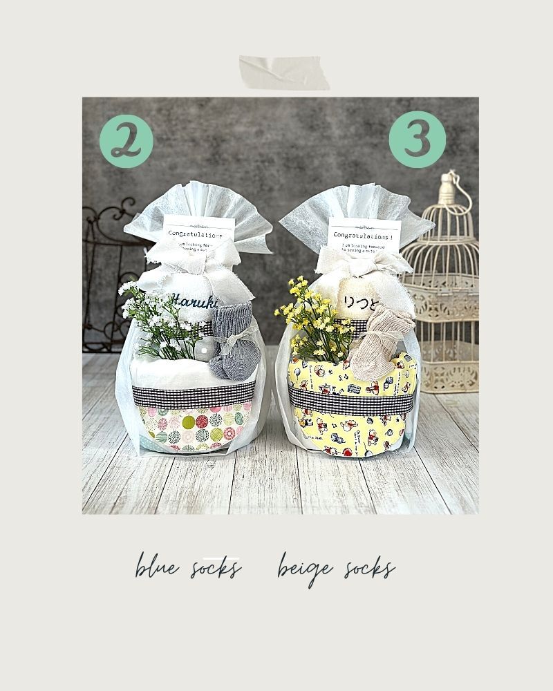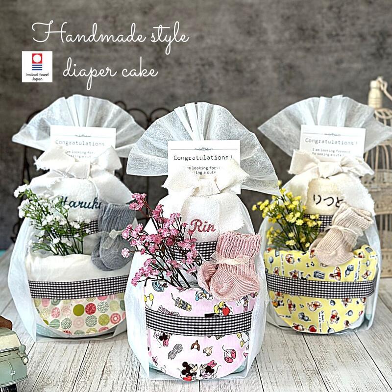 大口注文・法人のお問い合わせはこちら大切な赤ちゃんの誕生祝いに、心から喜ばれる贈り物を。 一つひとつ丁寧に手作りした、安心品質のハンドメイドおむつケーキです。 セットの高品質な今治ウォッシュタオルにお名前を刺繍すれば、世界でたった一つの記念品に。 華やかな見た目と実用性を兼ね備え、心からの祝福を伝えます。 <セット内容> ・ハンドメイドスタイ ×1 ・今治ウォッシュタオル ×1 ・ラルフローレンベビーソックス ×1 ・おむつ(ご選択いただく種類により枚数が異なります) ・フェイクフラワー ×1 <名入れについて> ※フルネーム不可。 ※名入れの文字数により、文字サイズが小さくなる場合がございます。