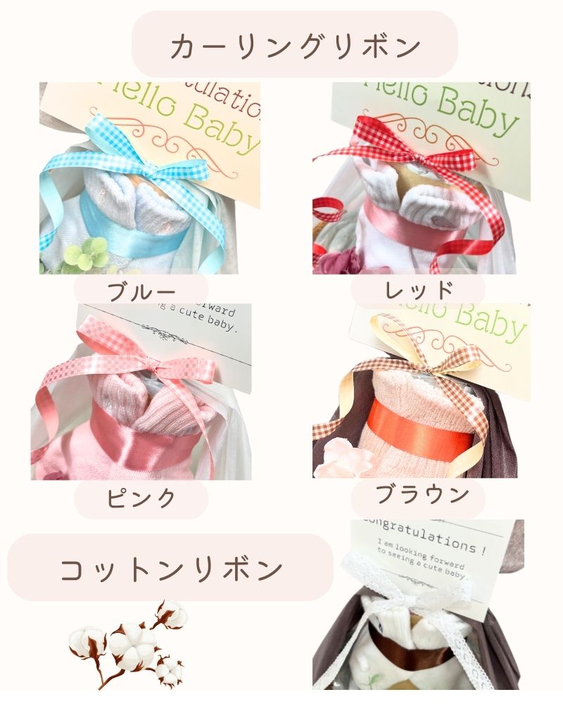 大口注文・法人のお問い合わせはこちらベビーシャワーの主役であるママの好きな色、生まれてくる赤ちゃんのイメージカラー。 リボンやタオルの色を自由に組み合わせ、あなただけのオリジナルデザインを創り上げましょう。 贈る相手を想いながら一つひとつ選ぶその時間さえも、かけがえのないギフトの一部になります。