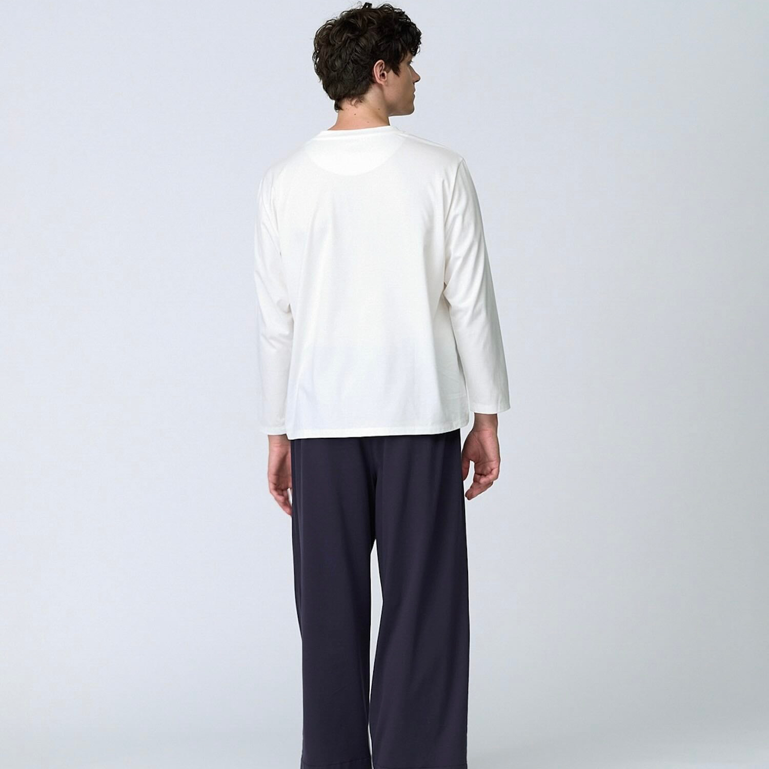 素材の心地よさからくる快適な着心地を追求し、シルクとコットンを使用したロングTシャツ。朝昼晩、どんなシーンでも着用できる、上品でリラックス感のある1枚です。寒い季節はセーターやニットの下に着るインナーとしても活躍してくれます。