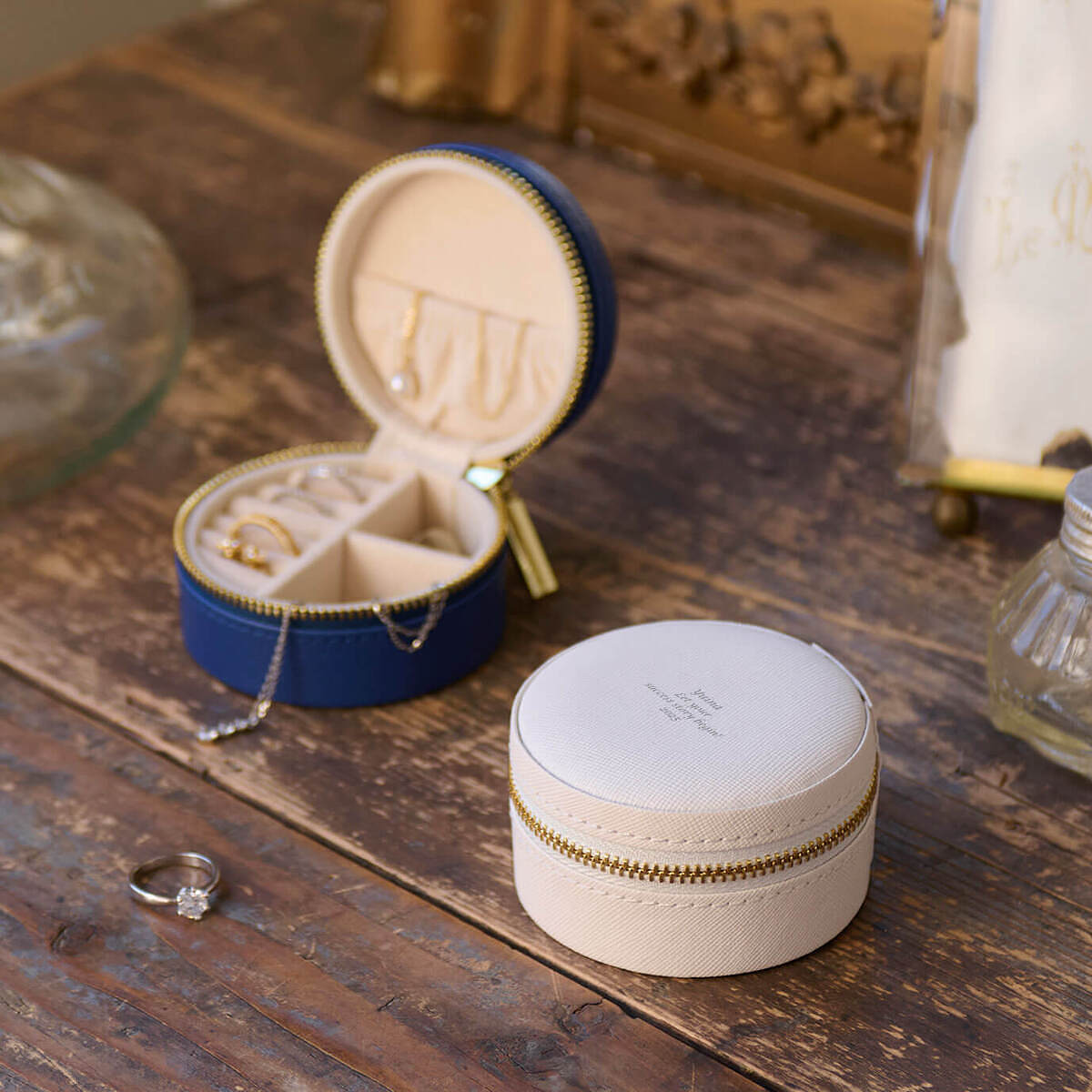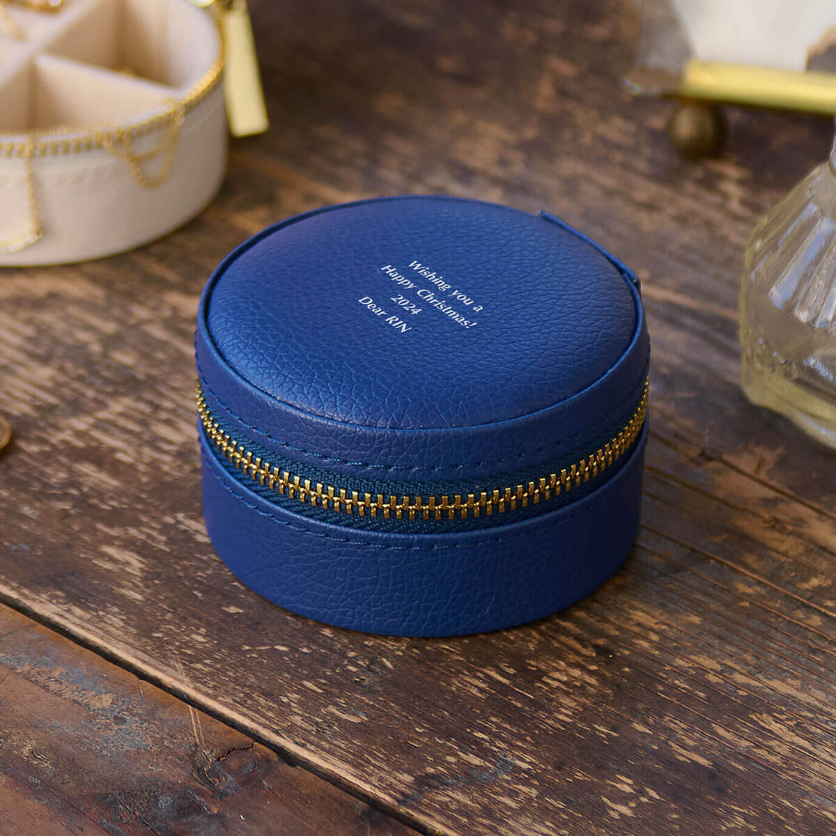 旅先や外出先で便利な手のひらサイズのジュエリーケースです。機能性も優れた小さな宝石箱が、大切なアクセサリーの輝きを守ります。名入れ刻印をすれば、世界に一つの特別な贈り物にも最適です。