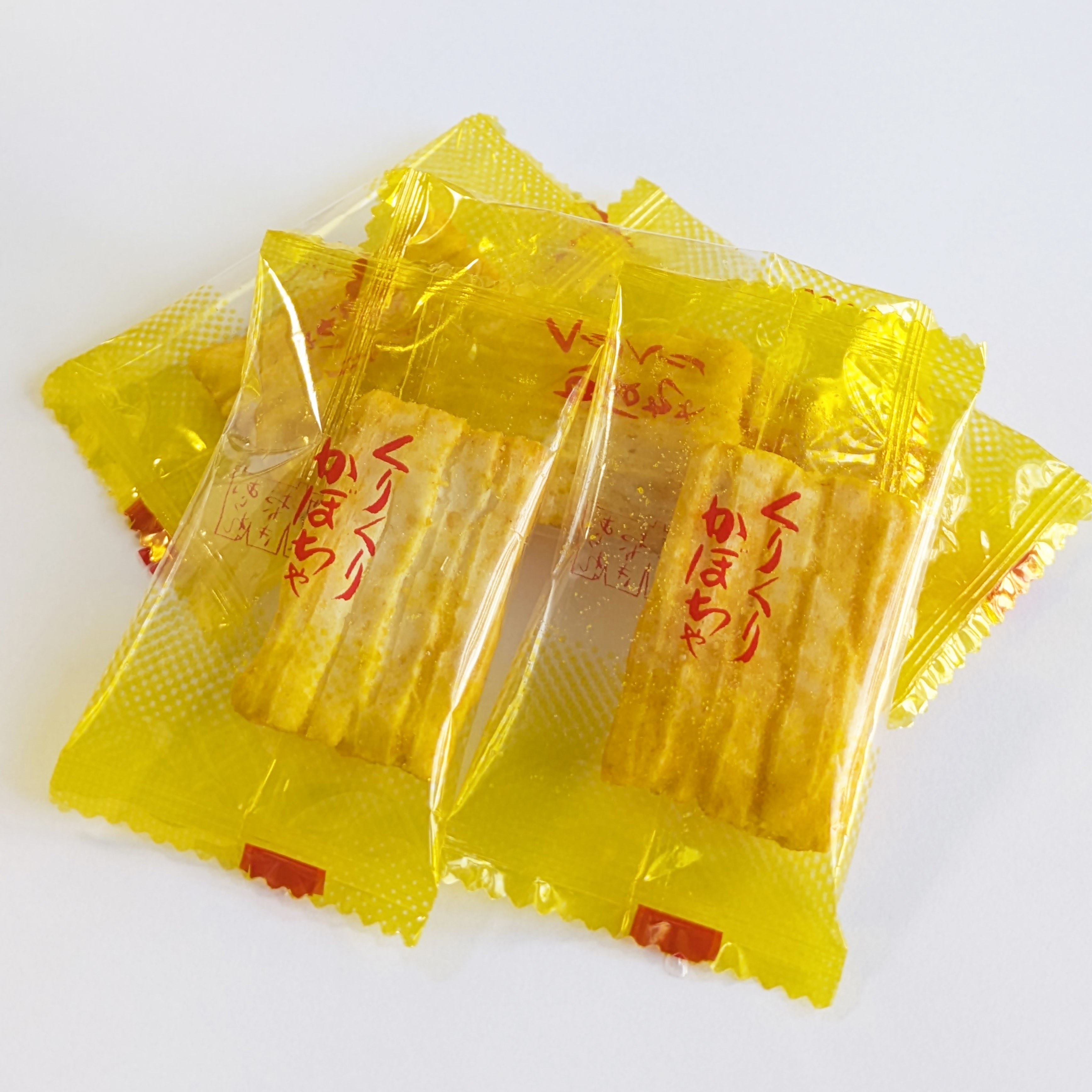 | 原材料 | もち米(国産)、植物油脂、南瓜粉末、南瓜香味調味料、食塩、粉糖、チキンコンソメパウダー、粉末醤油/調味料(アミノ酸等)、香料、甘味料(ステビア、甘草)、香辛料抽出物、(一部に小麦、乳成分、大豆、鶏肉、豚肉を含む) |