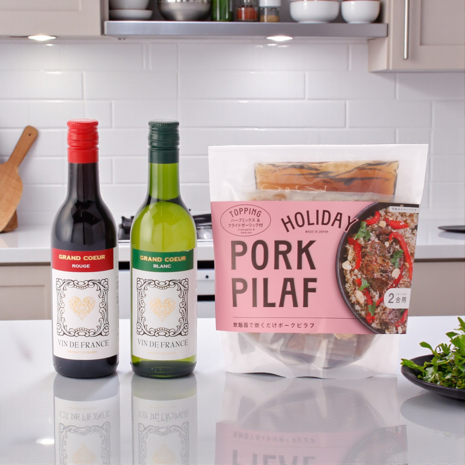 大口注文・法人のお問い合わせはこちら大切な記念日に、レストランのような高揚感を。 厳選された2本のミニボトルワインと、炊飯器で炊くだけで完成する本格ピラフのミールキットをセットにしました。 準備に手間をかけず、大切な人と語らう時間をゆっくり楽しんでほしい。 そんな想いを形にした、共働きのご夫婦やカップルに喜ばれる、大人のための体験型ギフトです。
