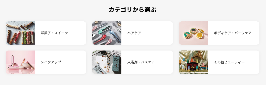 選りすぐりの焼き菓子やチョコレートなどの華やかなスイーツをはじめ、日常を少し特別にしてくれるヘアケア・ボディケア・メイクアップアイテム、心ほどけるバスタイムを演出する入浴剤まで幅広くご用意。甘いものが苦手な方にも選びやすい美容・リラックスアイテムを揃え、ホワイトデーのお返しに“ちょうどいい”ラインナップを実現しました。 ブランド例) GODIVA、STARBUCKS(スターバックス)、パティスリー銀座千疋屋、AND THE FRIET(アンド ザ フリット) ReFa、SNIDEL、Celvoke、NEAL'S YARD REMEDIES(ニールズヤード レメディーズ)..etc