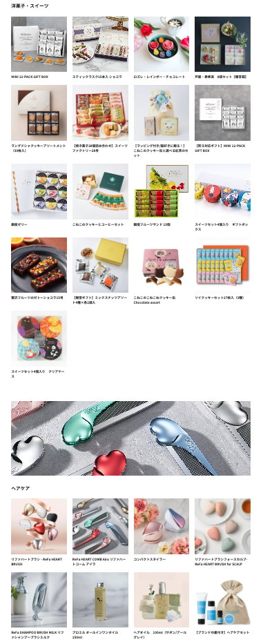 ※専用サイトに掲載されている商品情報は期間限定商品などを含んでおり、在庫状況などにより変更になる可能性があります。以下は一例となりますのでご了承ください。