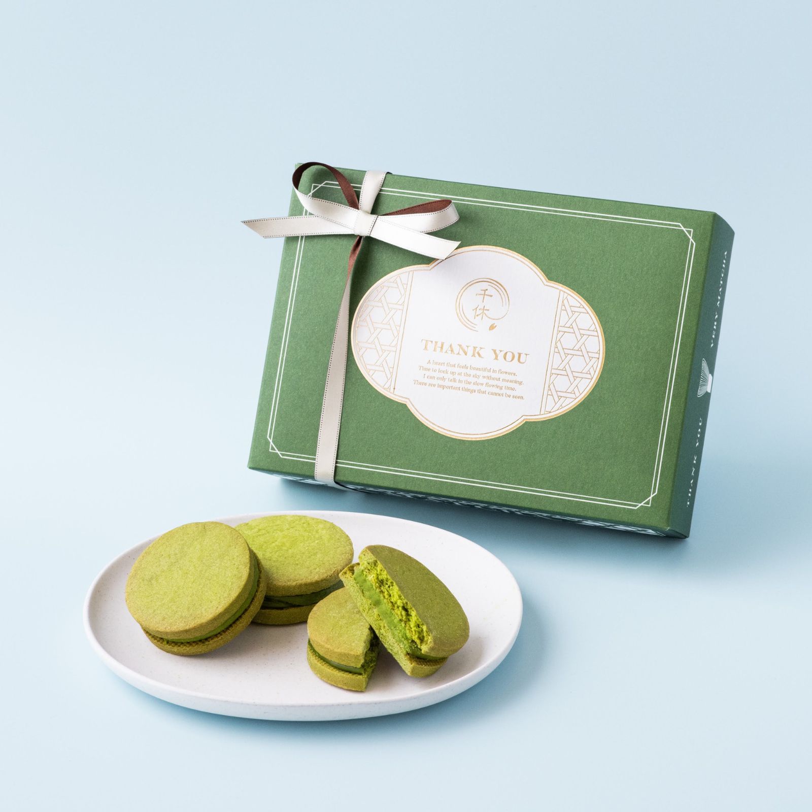 大口注文・法人のお問い合わせはこちら千休のガナッシュサンドは、京都府産宇治抹茶をふんだんにつかった抹茶スイーツ。 サクほろ食感が心地よい米粉の抹茶クッキーで、濃厚なホワイトチョコガナッシュを丁寧にサンドした一品です。 口に入れた瞬間ふわっと広がる抹茶の香り、後から追いかけてくる上品な甘さが魅力。 ホワイトチョコレートは重たすぎず、しっかりしたコクがありながらも軽やかで、一度食べたら“また食べたい”と思わせる大人の味わいに仕上げています。