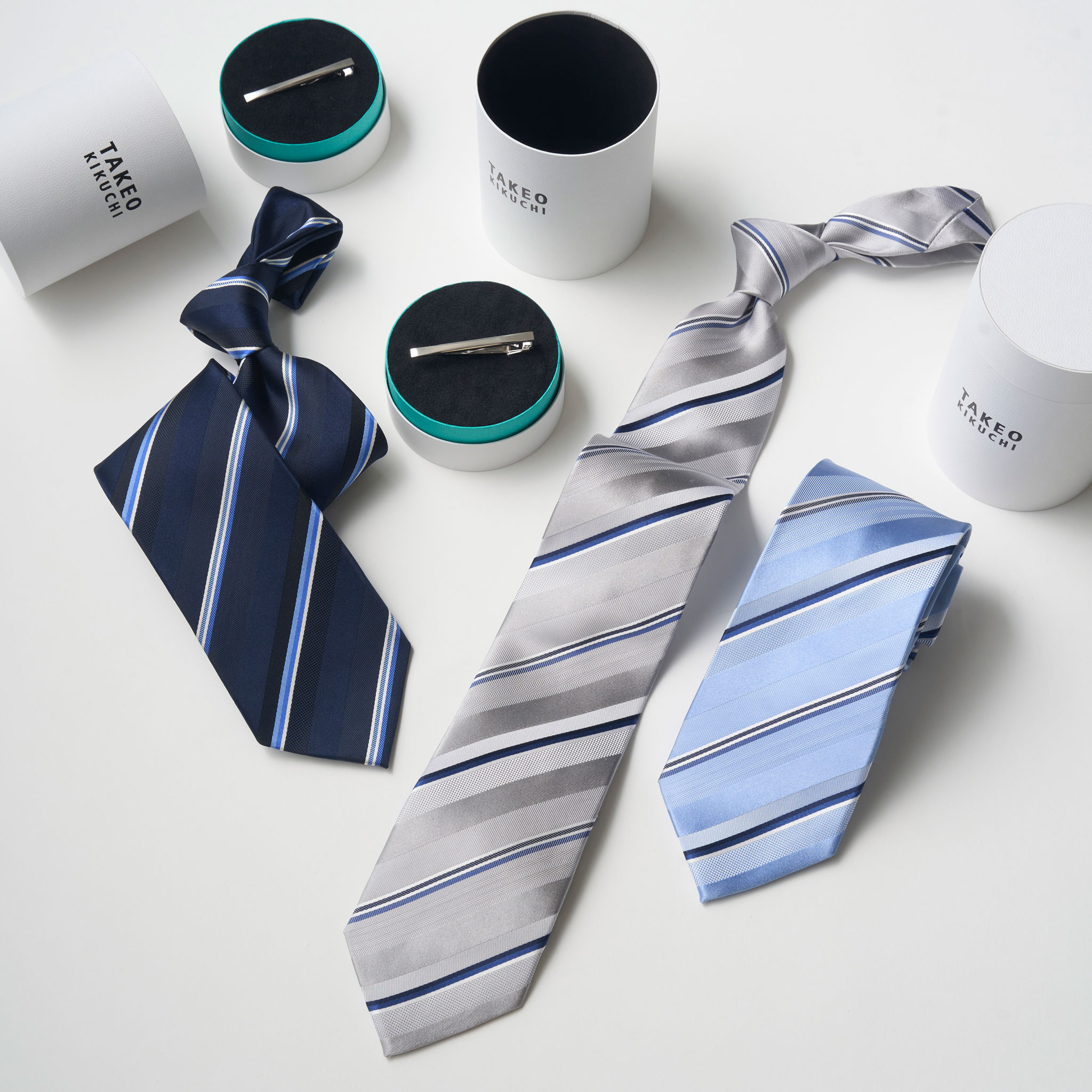 | セット内容 | ネクタイ・タイバー・ブランドロゴ入り専用円筒型ギフトBOX |