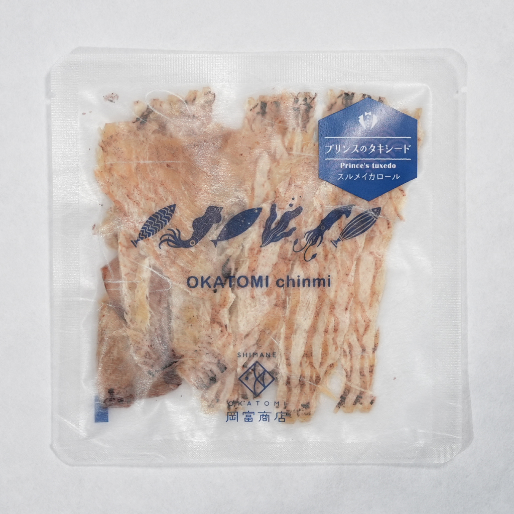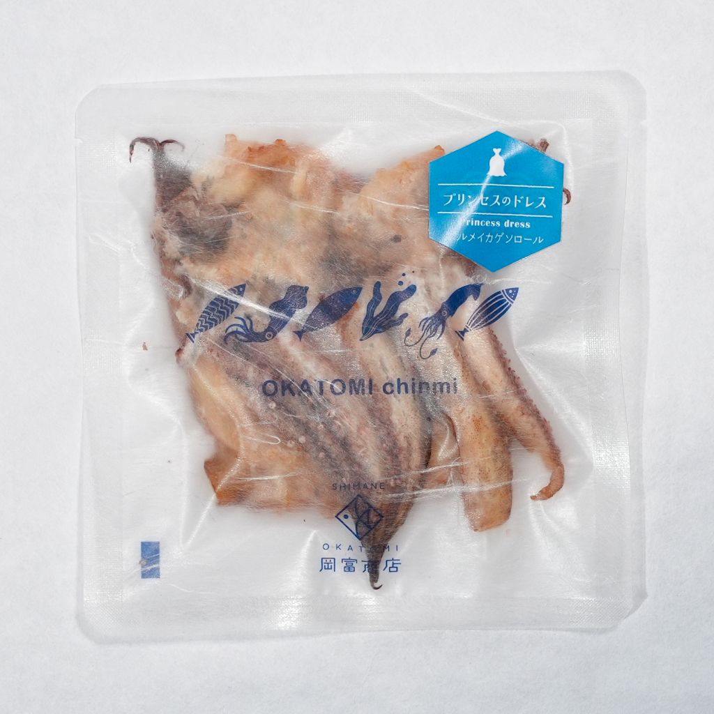 | 原材料 | 〇プリンスのタキシード スルメイカロール:スルメイカ、砂糖、還元水飴、塩、味醂/ソルビット、調味料(アミノ酸等)、保存料(ソルビン酸K)、甘味料(ステビア)、香料抽出物 〇花嫁の白無垢 白いかげそロール:ケンサキイカ、砂糖、還元水飴、塩、味醂/ソルビット、調味料(アミノ酸等)、保存料(ソルビン酸K)、甘味料(ステビア)、香料抽出物 〇プリンセスのドレス スルメイカゲソロール;スルメイカ、砂糖、還元水飴、塩、味醂/ソルビット、調味料(アミノ酸等)、保存料(ソルビン酸K)、甘味料(ステビア)、香料抽出物 〇ナポレオンの帽子 イカ耳のピリ辛おつまみ:ケンサキイカ耳、砂糖、還元水飴、塩、味醂、唐辛子/調味料(アミノ酸等)、ソルビット、甘味料(ステビア)、保存料(ソルビン酸K)、香料抽出物 〇静之窟 焼きあなご:マアナゴ、砂糖、還元水飴、塩、味醂/ソルビット、調味料(アミノ酸等)、保存料(ソルビン酸K)、甘味料(ステビア) |