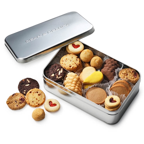 大口注文・法人のお問い合わせはこちらDEAN & DELUCAのロゴ入りシルバー缶に、アメリカの家庭的な味わいのクッキーを45枚詰め合わせたアソートメントです。ニューヨークのSoHoで生まれたマーケットが提案する「食の美しさ」が詰まった一品は、蓋を開けた瞬間に広がる甘い香りと共に、心温まる時間を届けます。