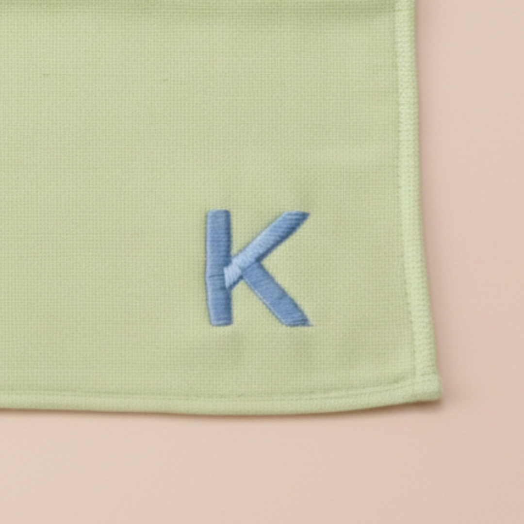 ご希望のイニシャルを有料オプションで刺繍いたします。