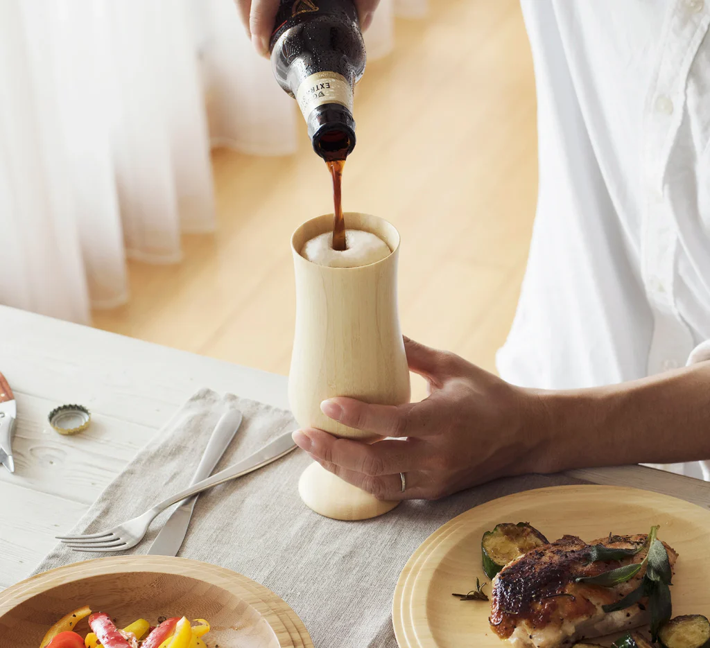 洗練されたシルエットのビアグラスならではの、クリーミーさとコクを鮮明に伝えるきめの細かい泡立ち。麦やホップ本来の香りを逃がさず、最後の一口までビール感をやさしく保ちます。手作りが生み出すやさしい口あたりだからこそ、表現できる味わいをお楽しみください。