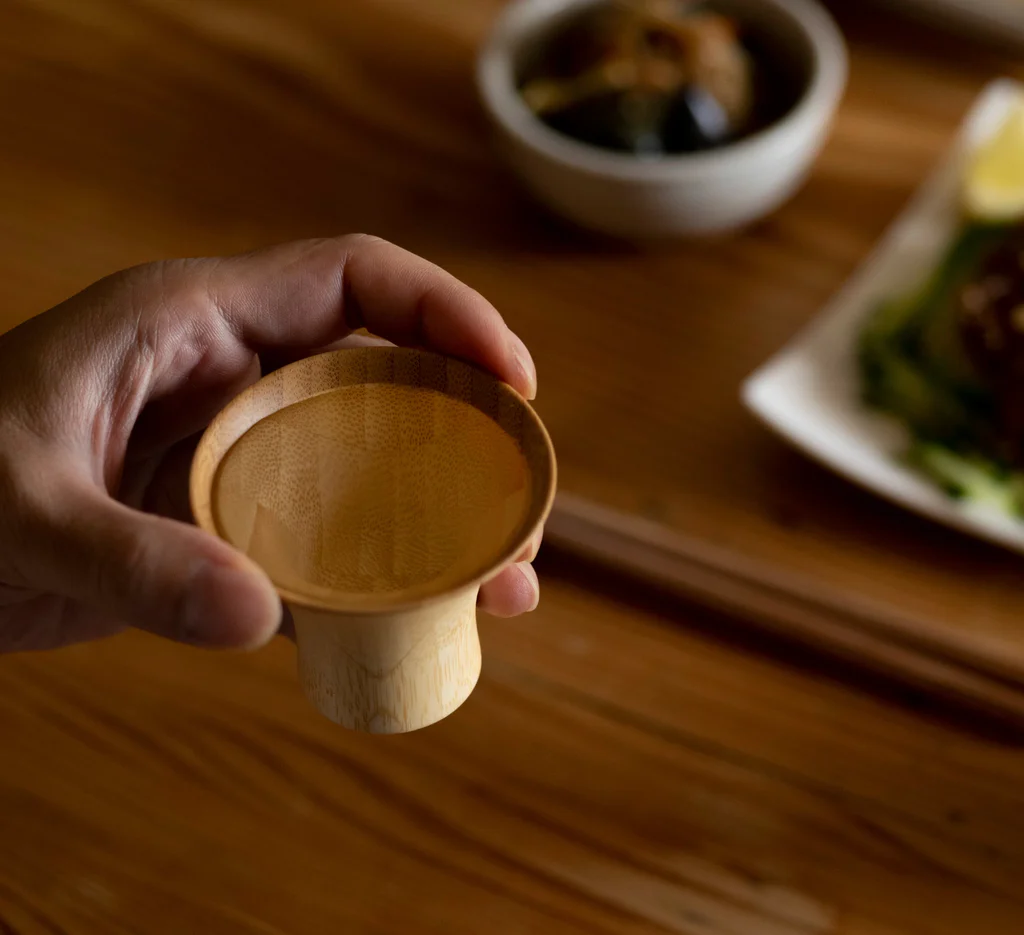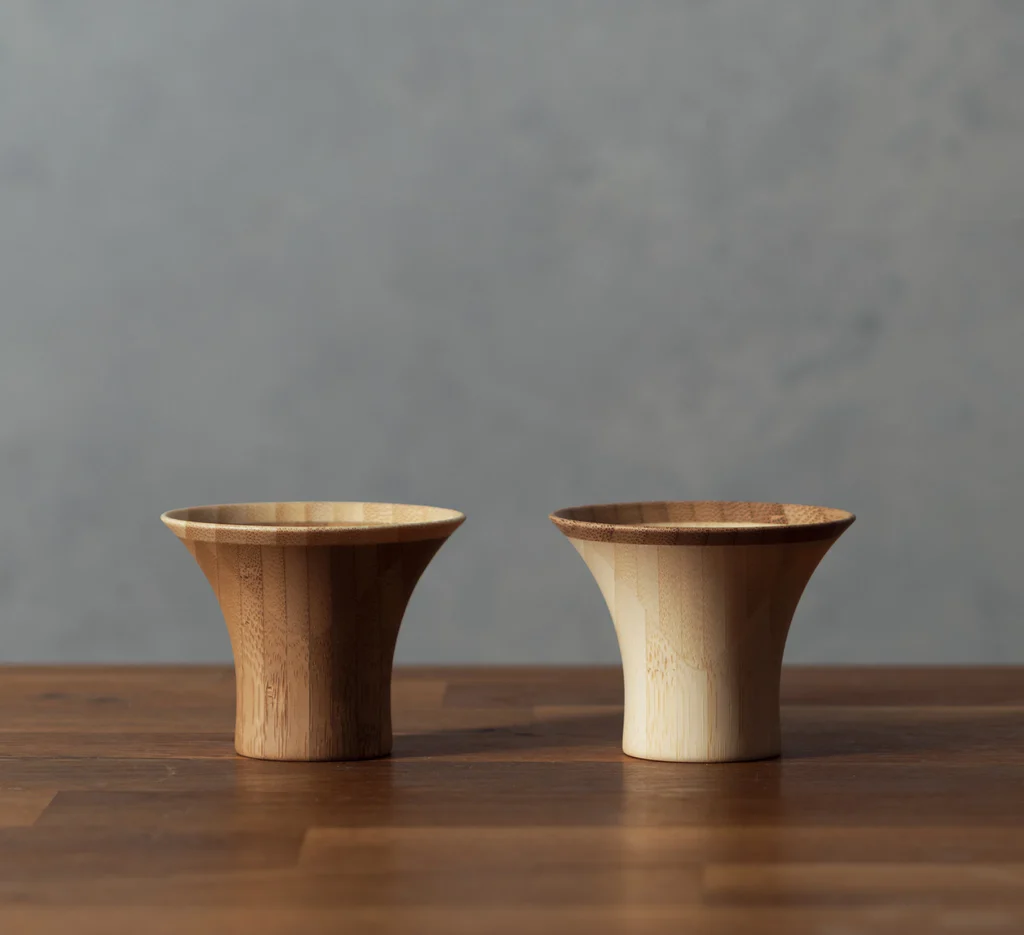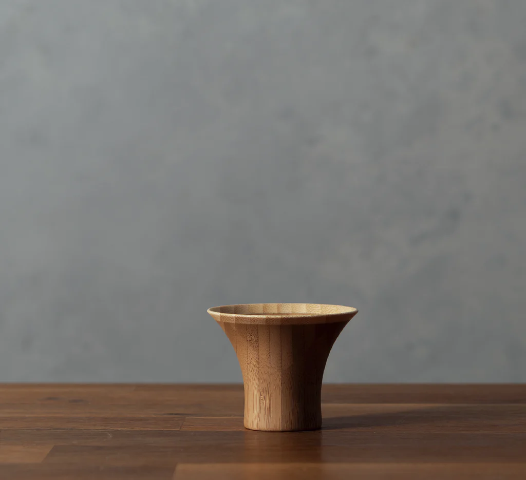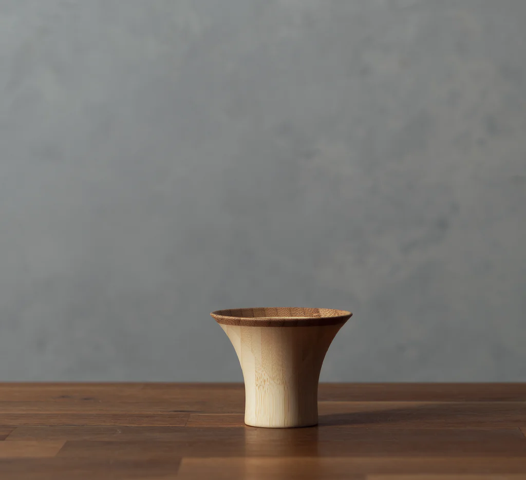 大口注文・法人のお問い合わせはこちらゆりの花をイメージした優美な曲線を描く、天然孟宗竹から作られたペアのおちょこです。上部に向かって大きく広がるラッパ型のフォルムは、食卓に上品な華やかさを添えてくれます。職人の手によって丁寧に仕上げられた滑らかな口当たりは、いつもの日本酒をより一層美味しく感じさせてくれるはずです。