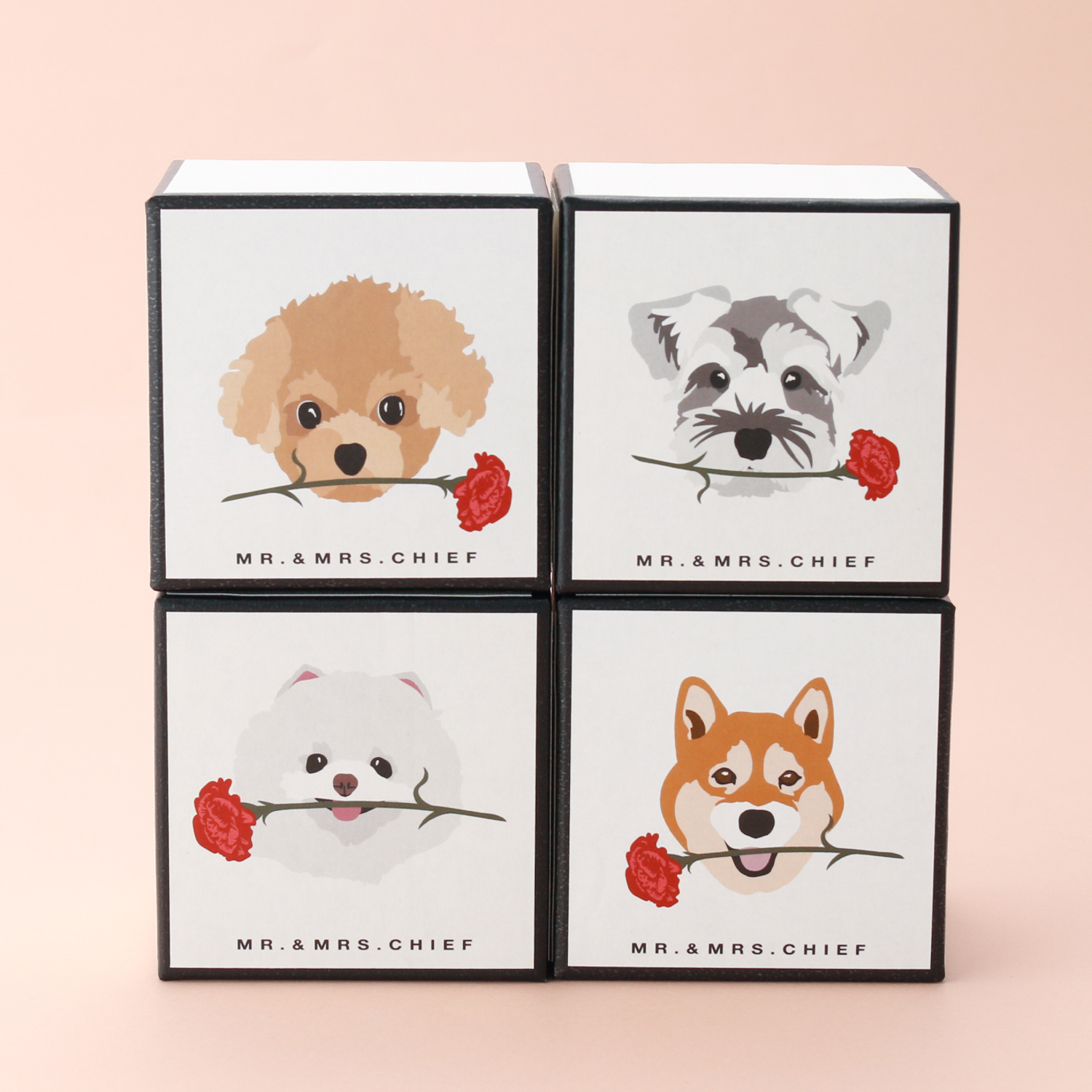 大口注文・法人のお問い合わせはこちら人気のINU・NEKOハンカチシリーズに母の日限定のスペシャルパッケージが登場! 手のひらサイズの愛らしいキューブ型ボックスには、ハンカチの刺繍とお揃いの、カーネーションをくわえた犬・猫のイラストが描かれています。 愛犬・愛猫はもちろん、相手の好きなモチーフを選ぶのも楽しみのひとつ。 ボックスを並べて飾っても可愛いです。