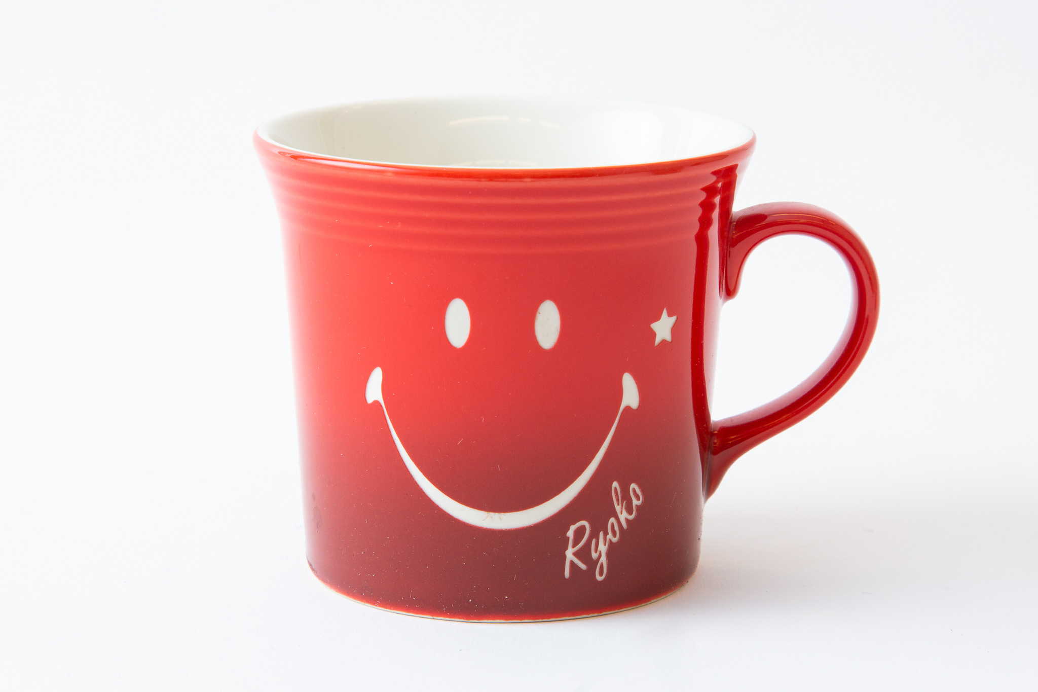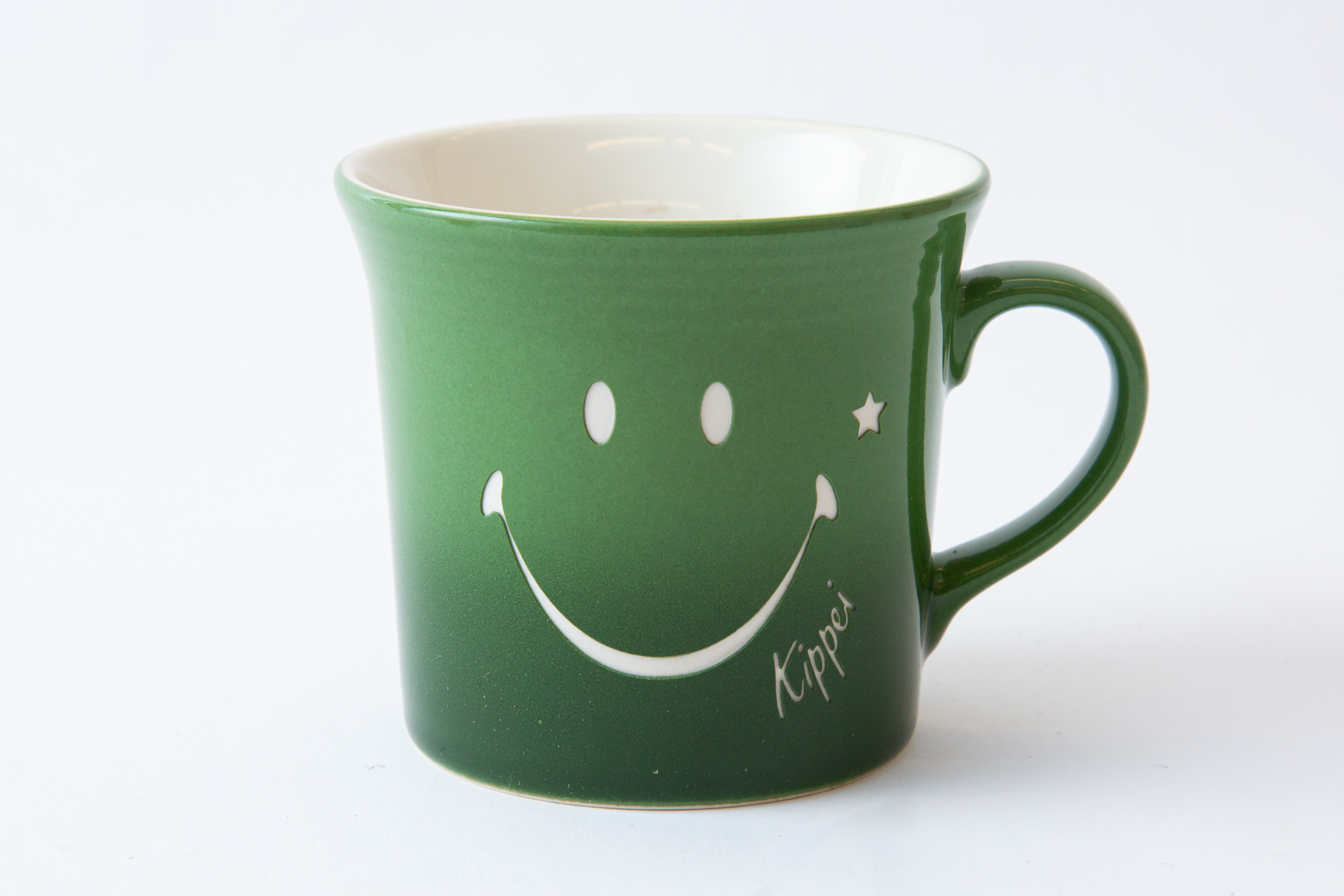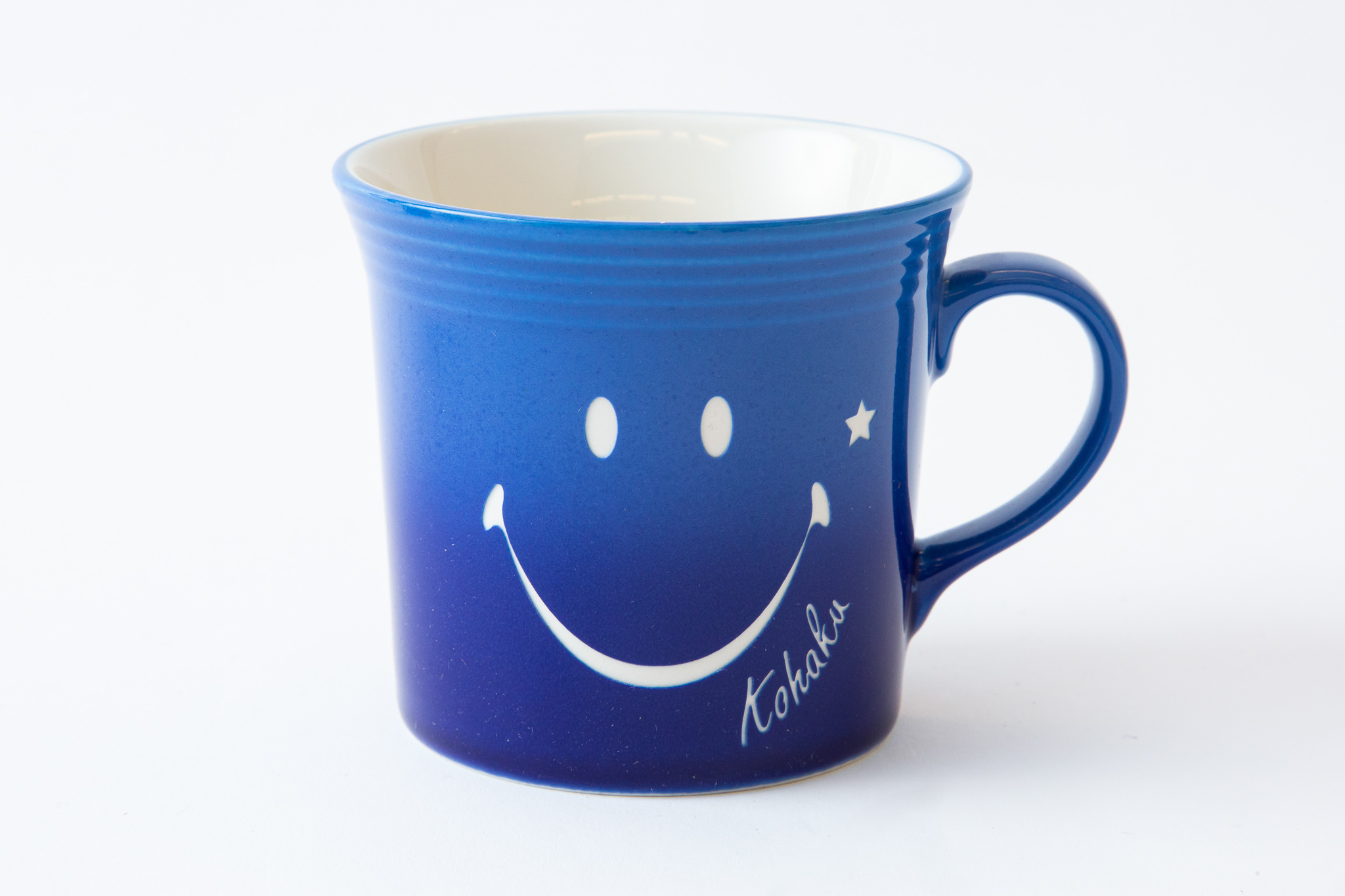 ニコッとした笑顔のデザインが施されたスマイルマグカップです。
