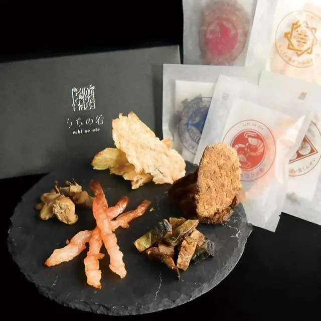 大口注文・法人のお問い合わせはこちらuchinoate ギフトセレクションは、海老や鯖、ばい貝などの高級食材を使用し、職人の手仕事で仕上げたこだわりの珍味5種類を詰め合わせたセットです。「ちょっと食べてみて」と誰かに教えたくなるような、他にはない味わいを厳選しました。いつものお酒の時間がもっと楽しくなる、そんな心躍る体験をお届けします。