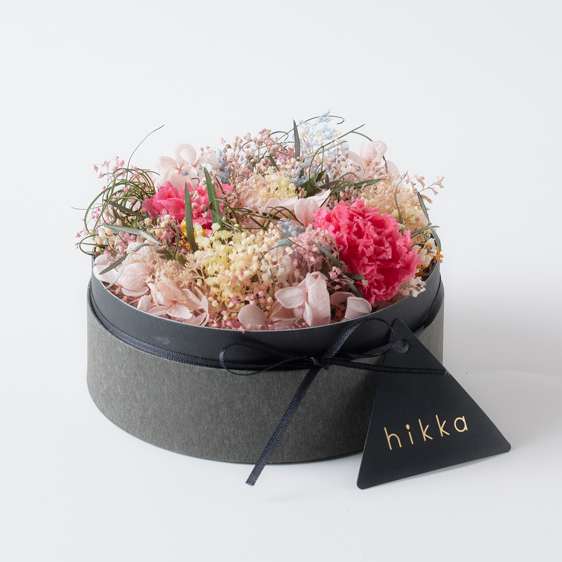 | 素材/原材料 | ドライフラワー、プリザーブドフラワー、フェノール樹脂、リボン、パルプ(容器) |