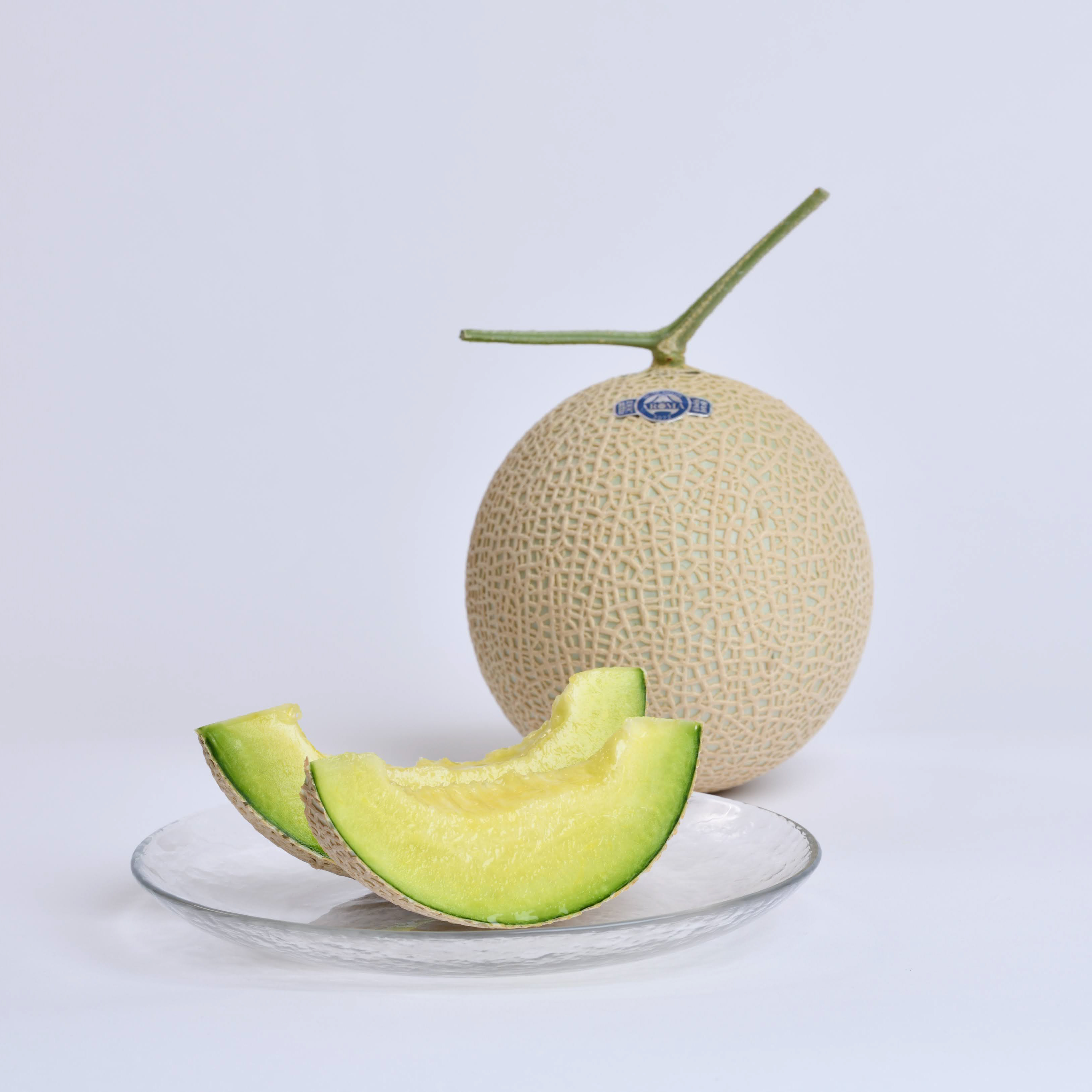 大口注文・法人のお問い合わせはこちら青アールスメロンの最大の魅力は、その芸術的なまでの網目の美しさと、口の中でとろけるような繊細な果肉にあります。スプーンを入れた瞬間に溢れ出す豊かな果汁と、濃厚でありながら後味の良い上品な甘みは、食べた人を虜にする味わいです。厳選された一玉だからこそ味わえる、贅沢な美味しさをお届けします。