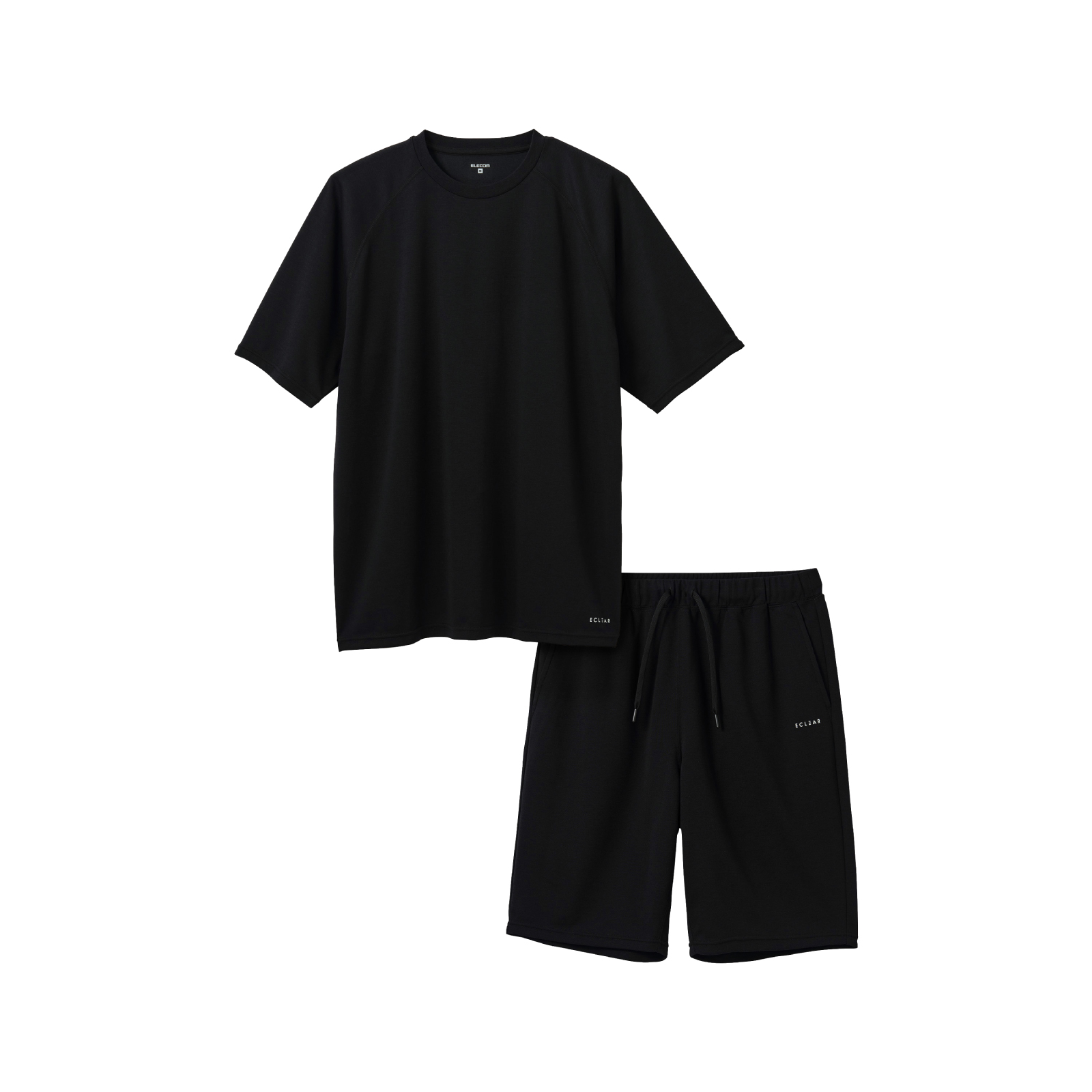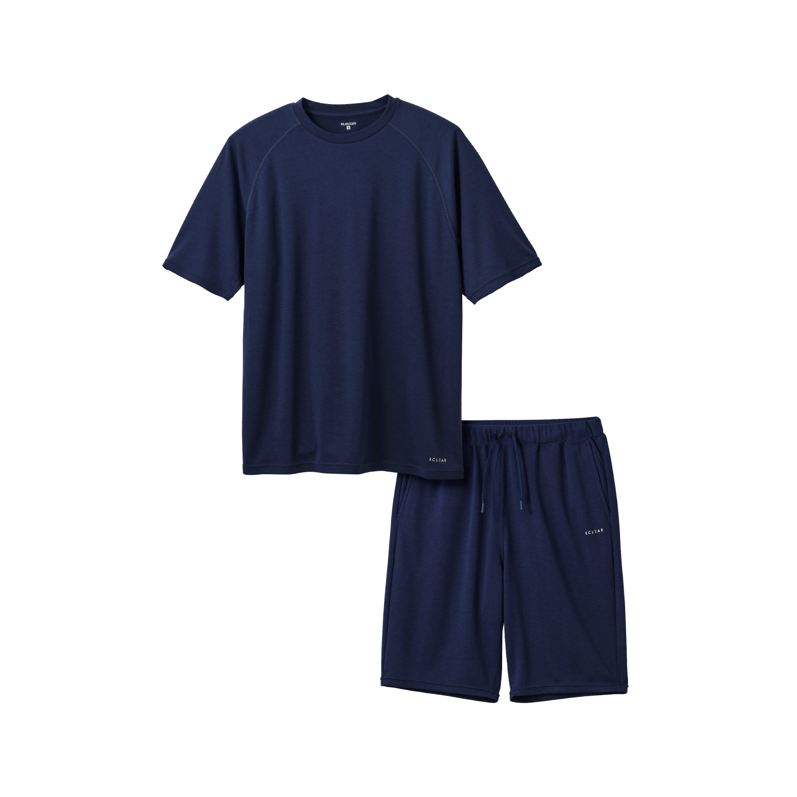 大口注文・法人のお問い合わせはこちらデジタル社会で疲れた身体に、「着るだけ」で毎日の休息タイムをワンランクアップ!デスクワークや運動後の疲れた筋肉をやさしくケアするECLEAR リカバリーウェアの半袖トップスとハーフパンツのセットです。