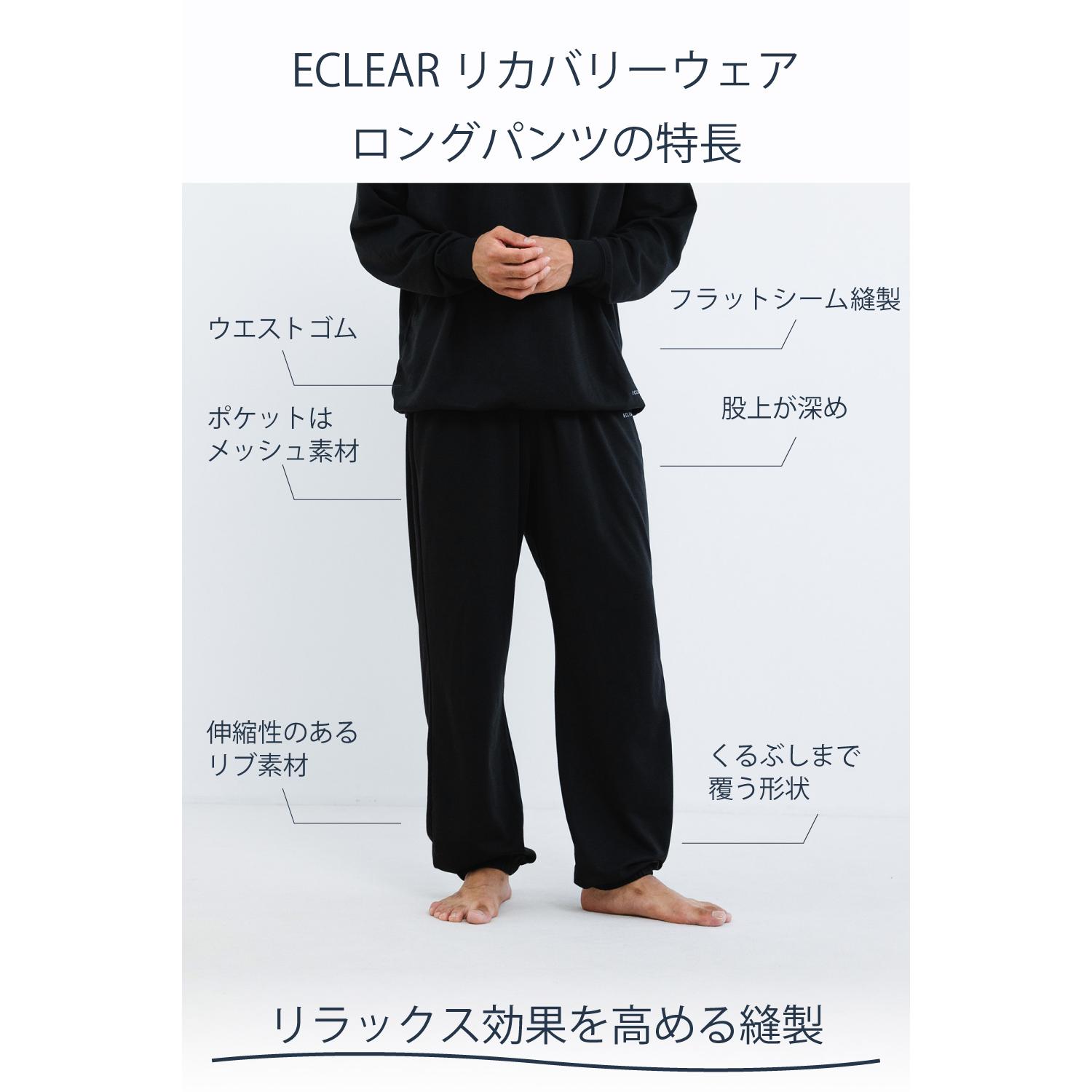 デスクワークや運動後の疲れた筋肉をやさしくケアするECLEAR リカバリーウェア長袖上下セットです。極小の高純度セラミックスを特殊製法で生地に配合したMedilect(TM)を採用。血行を促進し、着るだけで疲労回復を叶えます。細部までこだわった設計で快適な安らぎ時間をサポートします。
