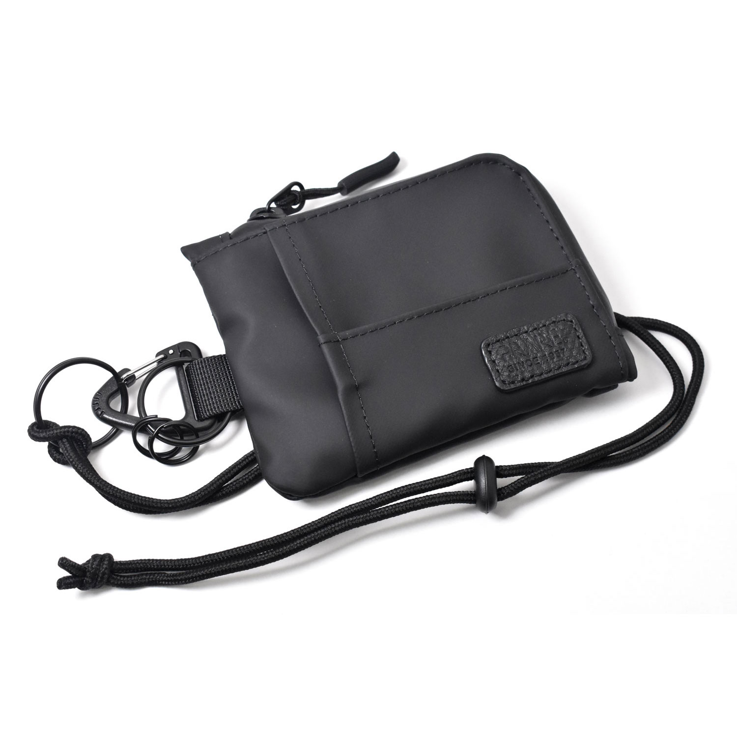 | 仕様 | ファスナーメインポケット:1個 内カード室:2個 外正面オープンポケット:1個 外裏面マジックテープポケット:1個 カラビナ型フック:1個 リング大:1個 リング小:2個 ネックストラップ:1個 中国製 |