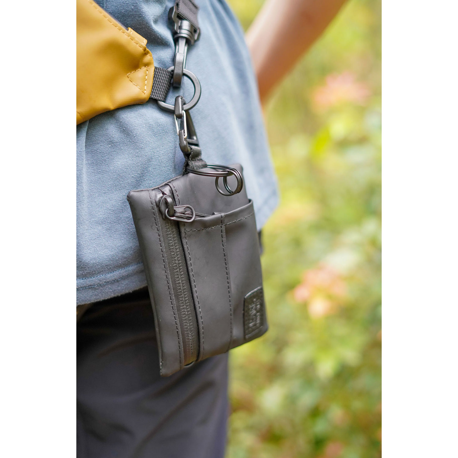 首から下げられるストラップが付いているため、常に両手を自由に使いたいアウトドアシーンで重宝されます。鍵やカードだけでなく、二つ折りにしたお札も収納できるので、コンパクトな財布としても活躍します。