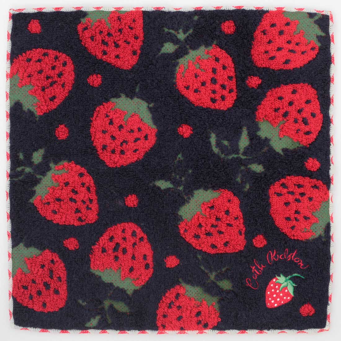 オーガンジー巾着に入った、ギフトにぴったりのタオルハンカチ。大きないちご柄が目を惹くタオルはふわふわで手触り抜群です。感謝を伝えるプチギフトとしてそのままお渡しいただけます。