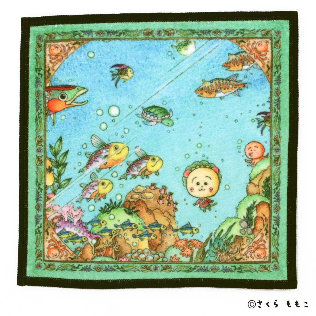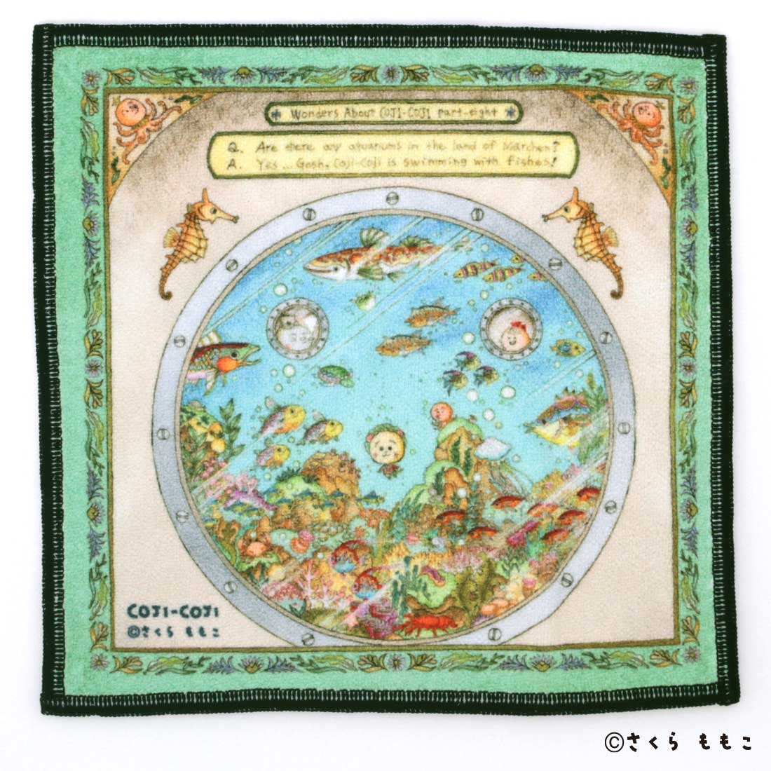 原画イラストのデザインを裏表の両面でお楽しみいただけます。表面では泳いでいるコジコジ、裏面ではそのコジコジを窓から覗いているやかん君とペロちゃんがポイントになったデザインです。