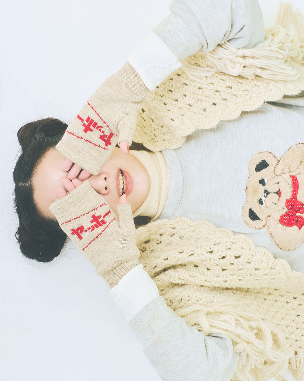 いつでも、どこでも、やまびこを作れる手袋。 口にあてると “ヤッホー” と言っているように見える、遊びごころ溢れるデザインです。 手の甲側はシンプルな無地なのでコーディネートを選ばずにお使いいただけます。 手首のリブ側は長めで暖かく、防寒もしっかり対応。 通勤や通学時、寒い日のお出かけに大活躍します。