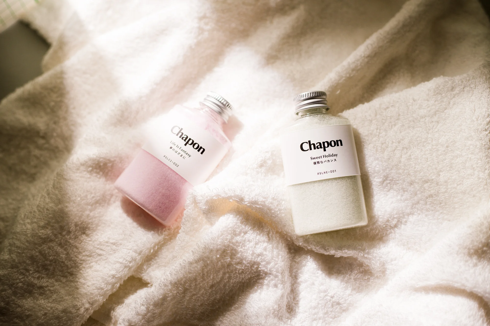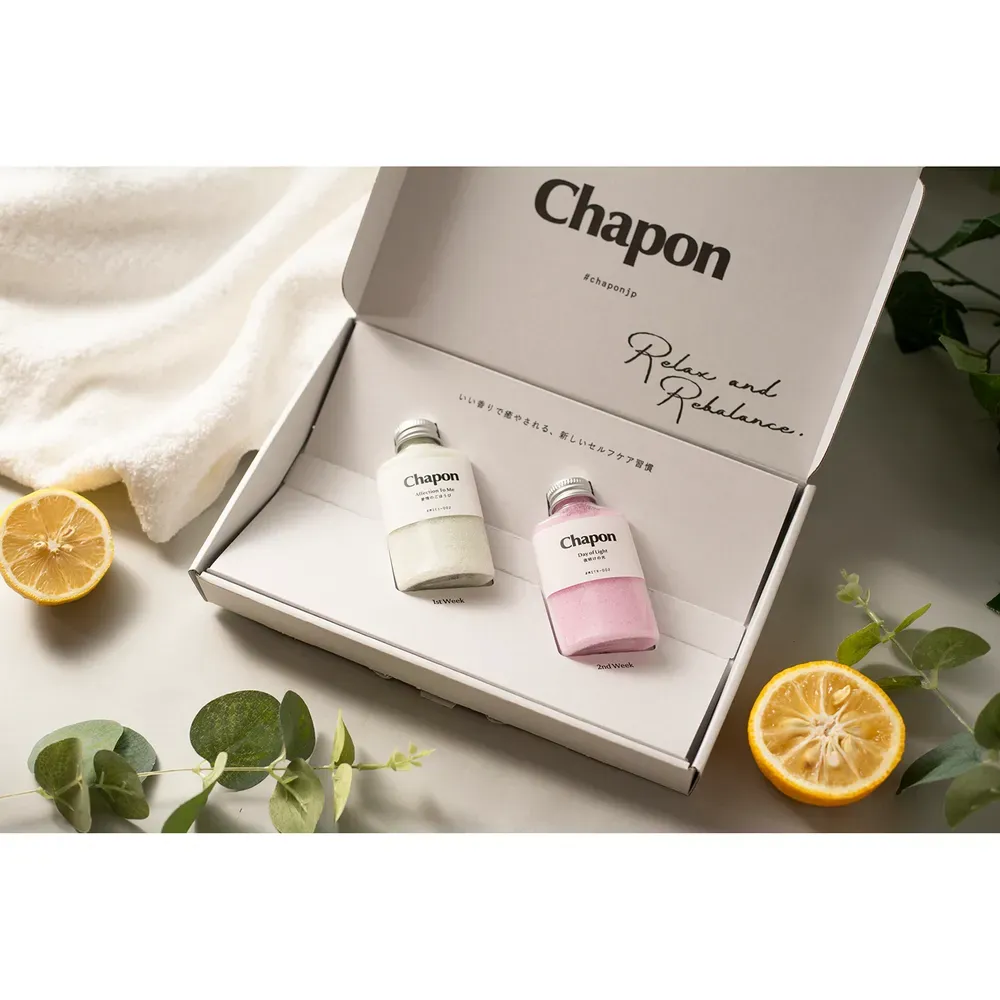 アロマの専門家が非日常の癒しで疲れた気分をリセットするために開発した高級入浴剤・バスソルトで、天然の香り100%で作った贅沢な時間を楽しめます。 敏感肌にも優しく、家族みんなでお使いいただけます。 Chaponではお悩み別や、季節のイベントに合わせて特別なギフトセットを作っています。 大切な方を想って選んでみてください。
