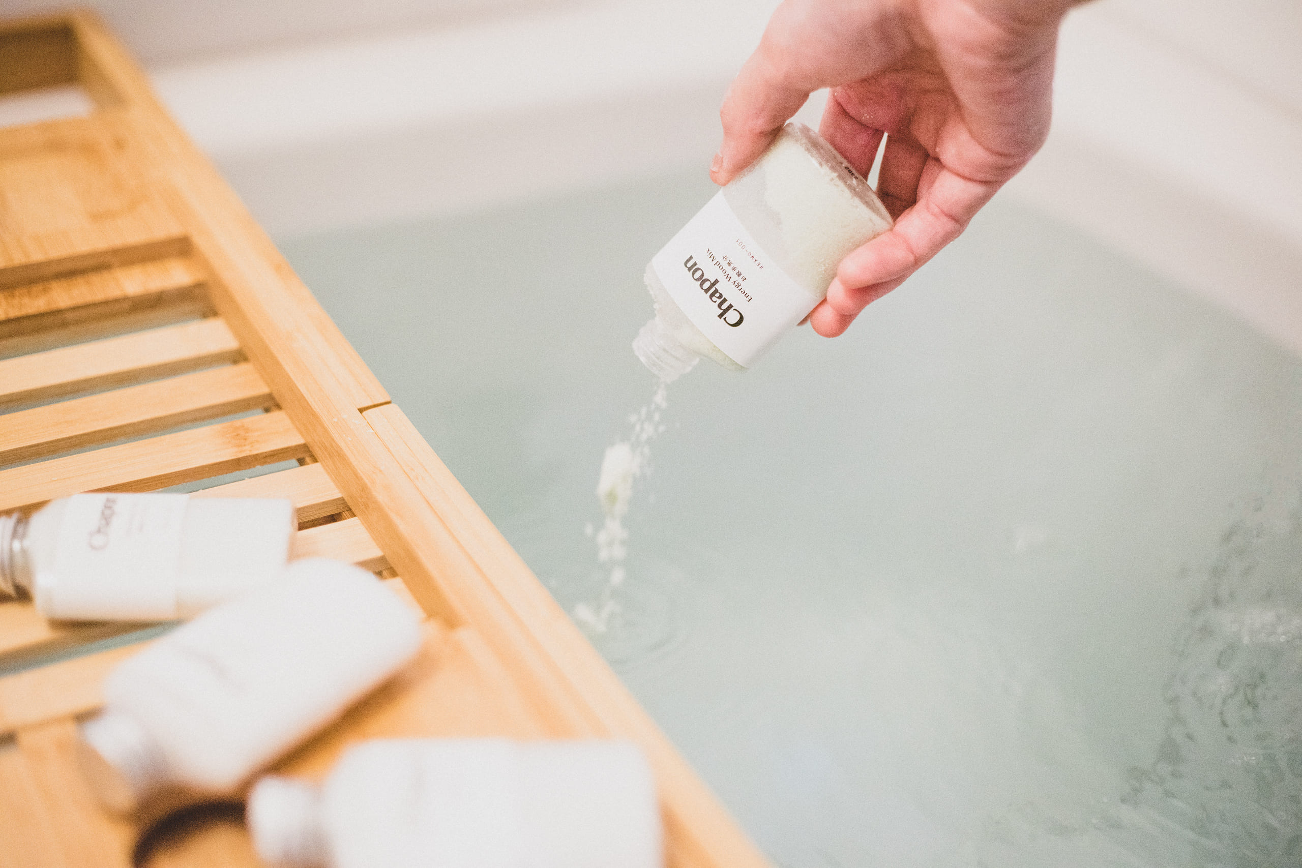 Chaponで使用する天然精油は、自然植物の香り成分を高濃度に凝縮した純度100%。数はなんと170種類以上。その中から香りの専門家がセレクト・ブレンドしたオリジナルの香りです。 お風呂の中を包む上質な癒しの香りでリラックスを。