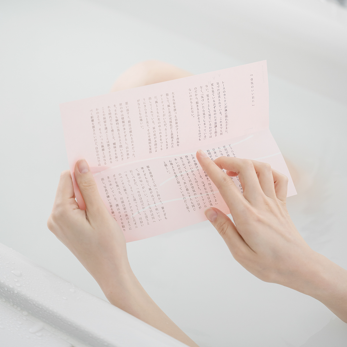 ふと、誰かの何気ない言葉に勇気づけられたり、心があたたかくなったり、思わず笑ってしまったり。 入浴剤を包む紙に綴られた「こころ温まる文章」が、呼吸を深める時間を作ります。 お風呂に入りながら、ゆっくりとお読みください。