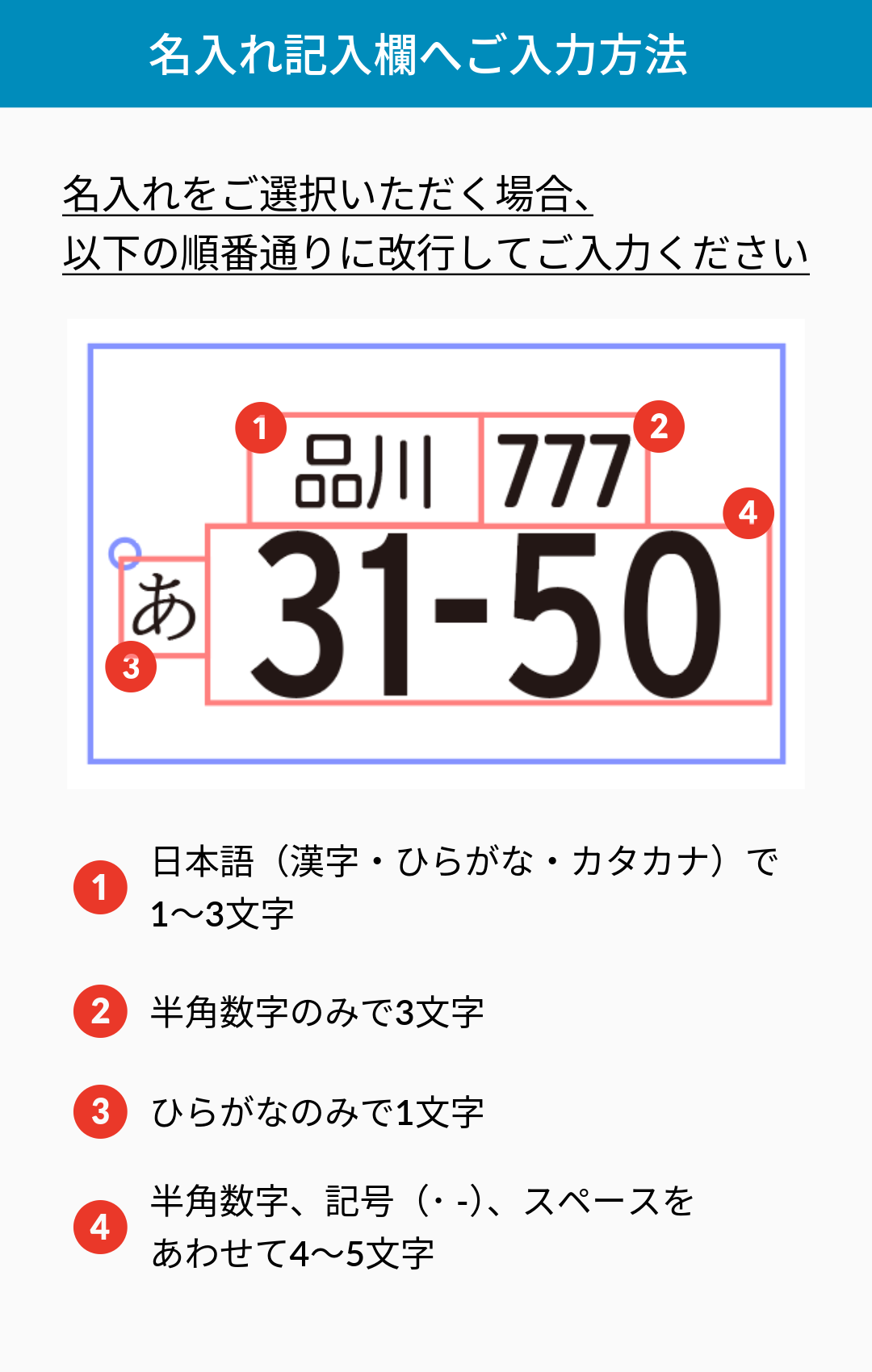ご入力いただいた内容通り、刻印をいたします。 以下の方法を必ずご確認の上、情報のご入力をお願いいたします。