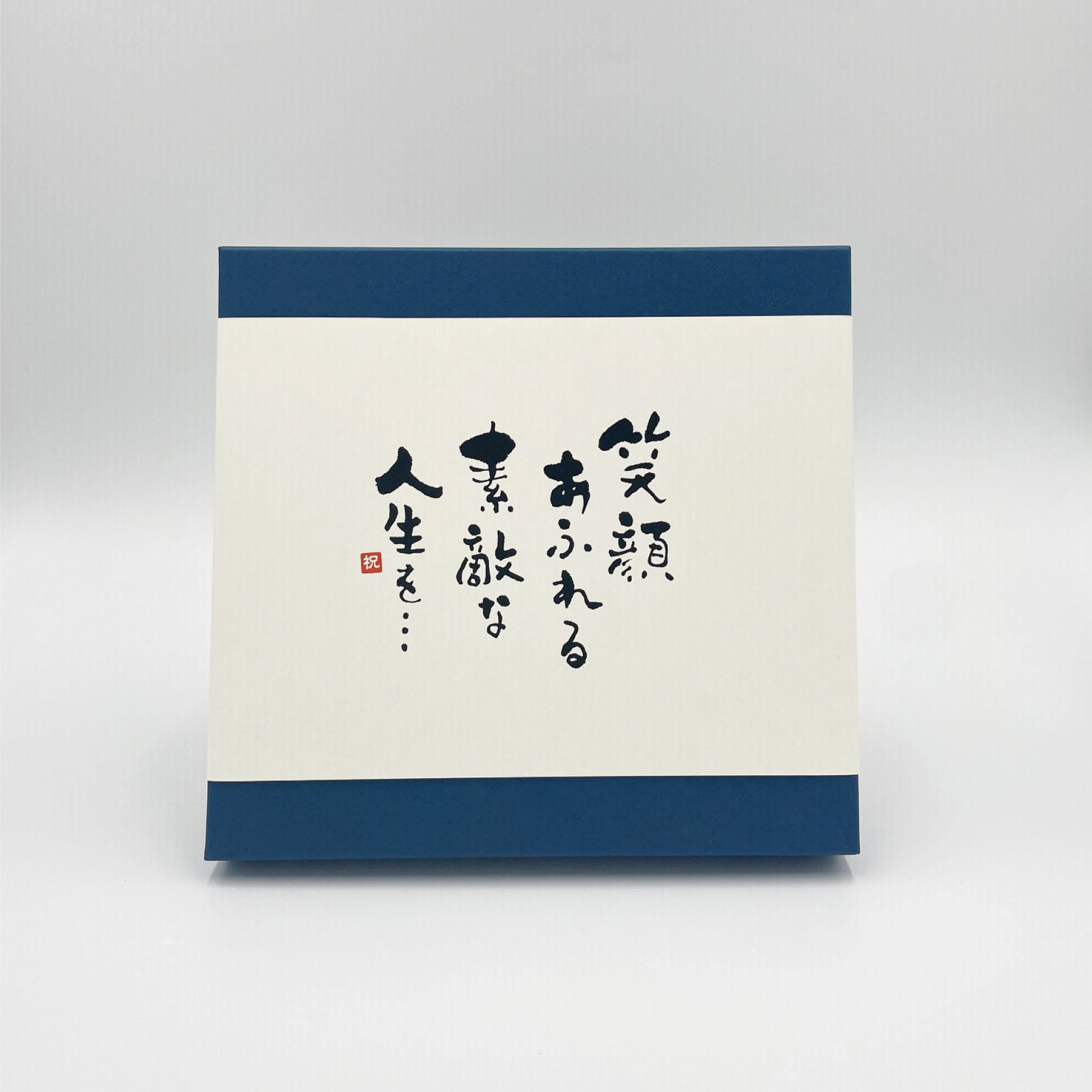 出来上がった商品は紺色の化粧箱に入れ、ご希望の場合はメッセージ掛紙をお付けいたします。 ご注文時の「ラッピング・お届け希望日時の選択」画面にて、ご希望の対応をご選択ください。