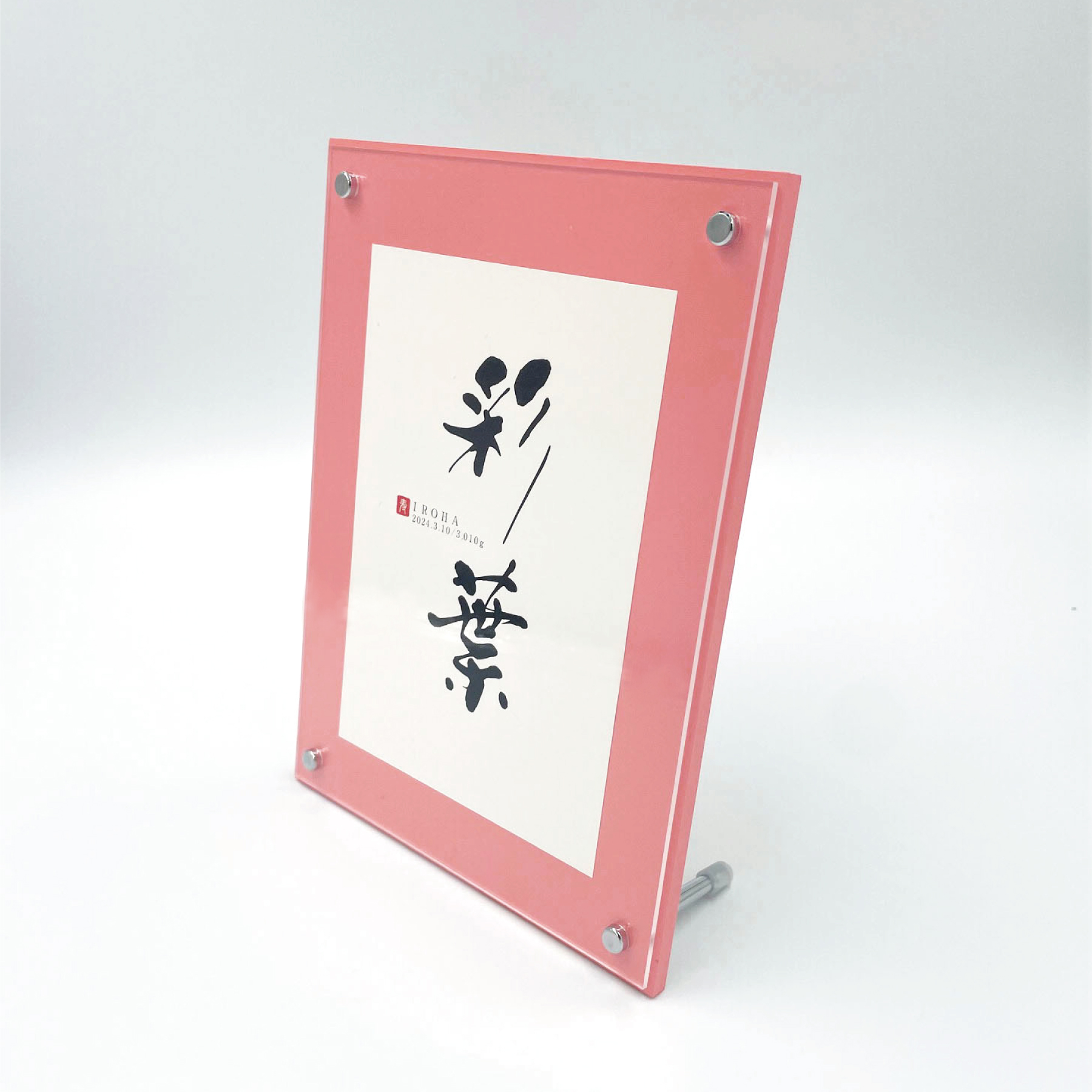 大口注文・法人のお問い合わせはこちら手書きの筆文字は、熟練された職人の手によって書かれたもので、よく目にする筆文字自体の重さはなく、軽く親しみやすい個性あふれる字体です。筆文字とフォントのバランスのよさが絶妙で、明るいピンクのカラーボードに映えます。