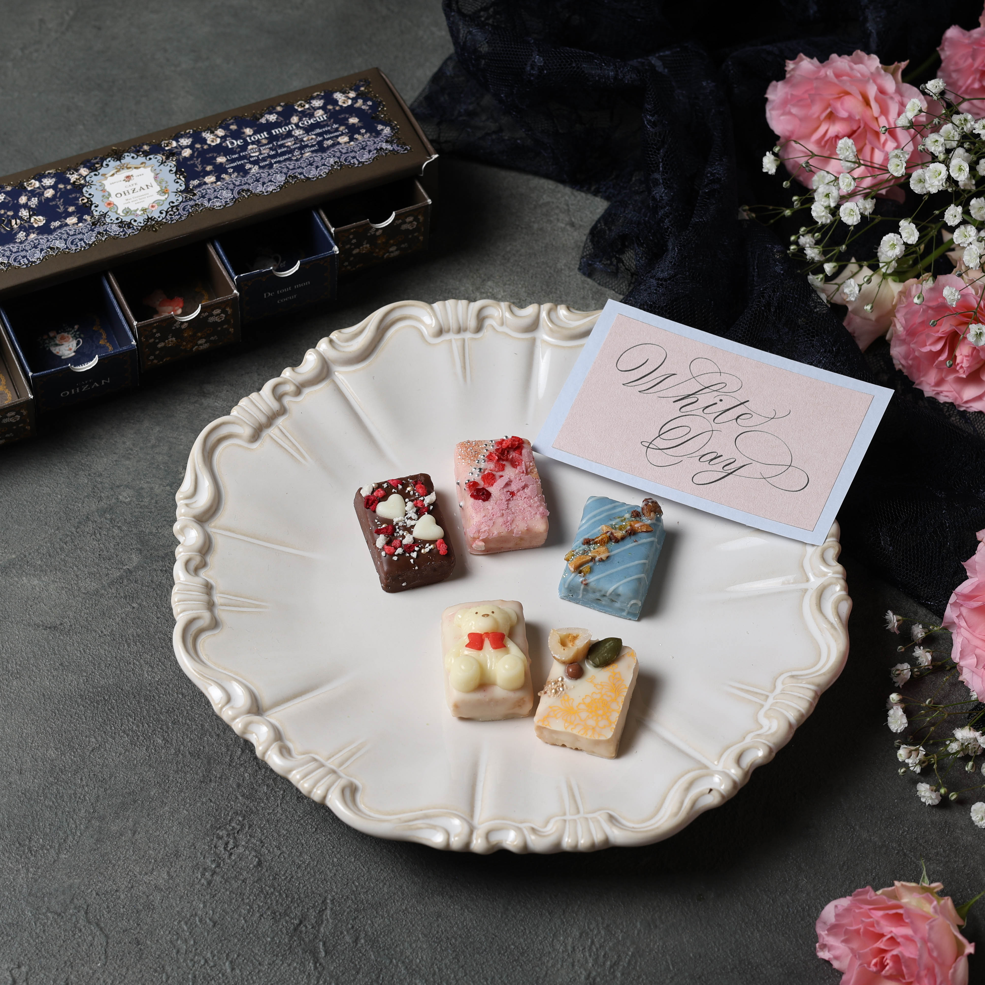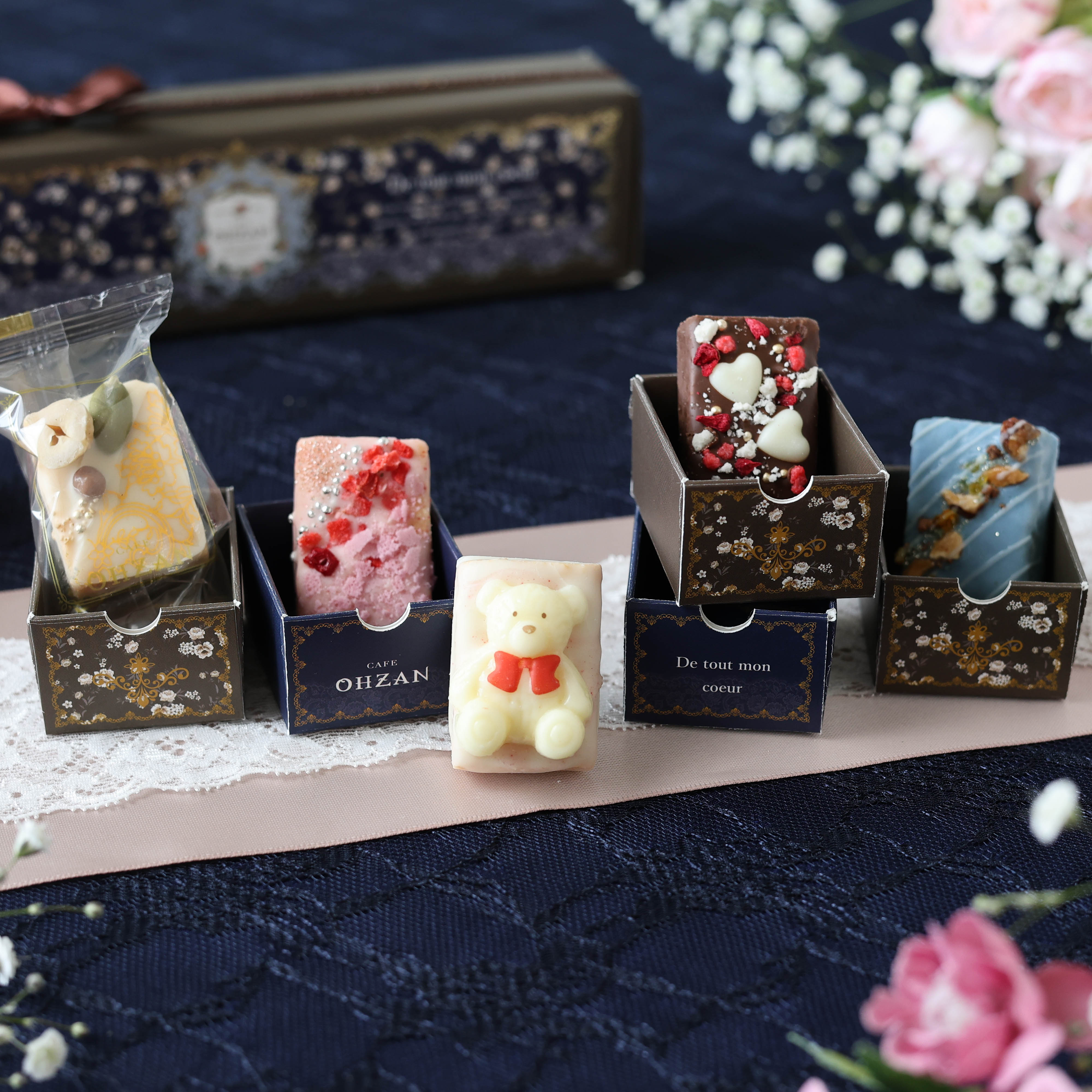 “大人可愛い”をテーマにチョコレートラスクを展開する CAFE OHZAN(カフェオウザン)の、フランス語で「愛しい人」と名付けられた期間限定のキューブラスクです。
