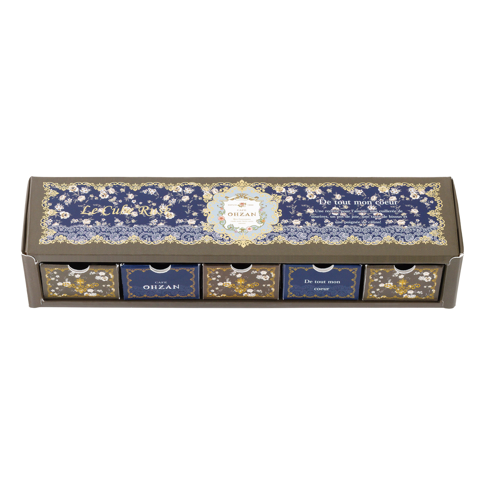 お配りギフトにおすすめ!「CAFE OHZAN(カフェ・オウザン)」が贈る、フランス語で「愛しい人」と名付けられた期間限定のキューブラスク10個セットです。