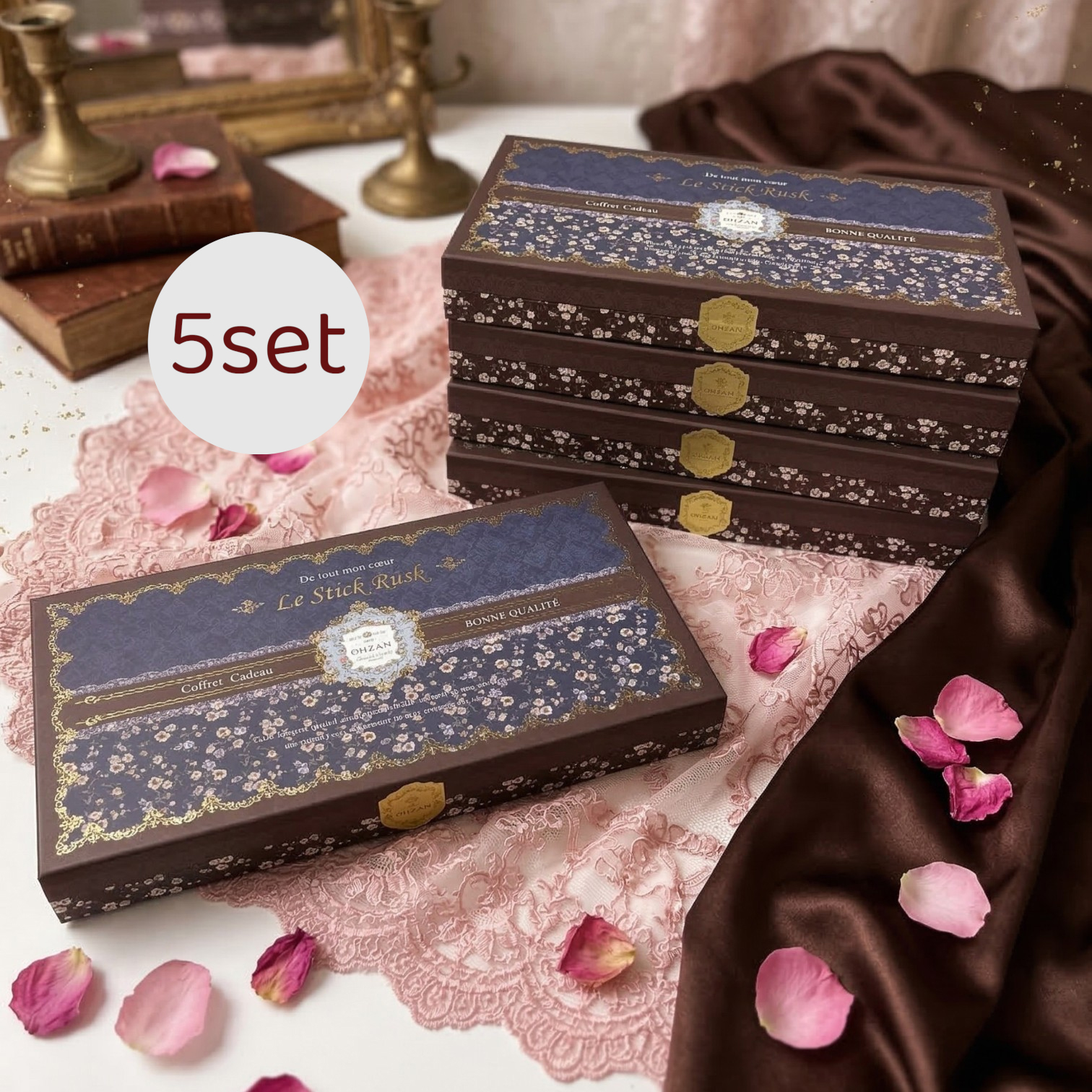 大口注文・法人のお問い合わせはこちらまるで宝石のような「CAFE OHZAN」のスティックラスク10本入りを、贅沢な5箱セットでお届けします。 サクサクのラスクを華やかにデコレーションした人気スイーツ。大切な方へのお配りギフトや手土産にぴったりなまとめ買いセットです。