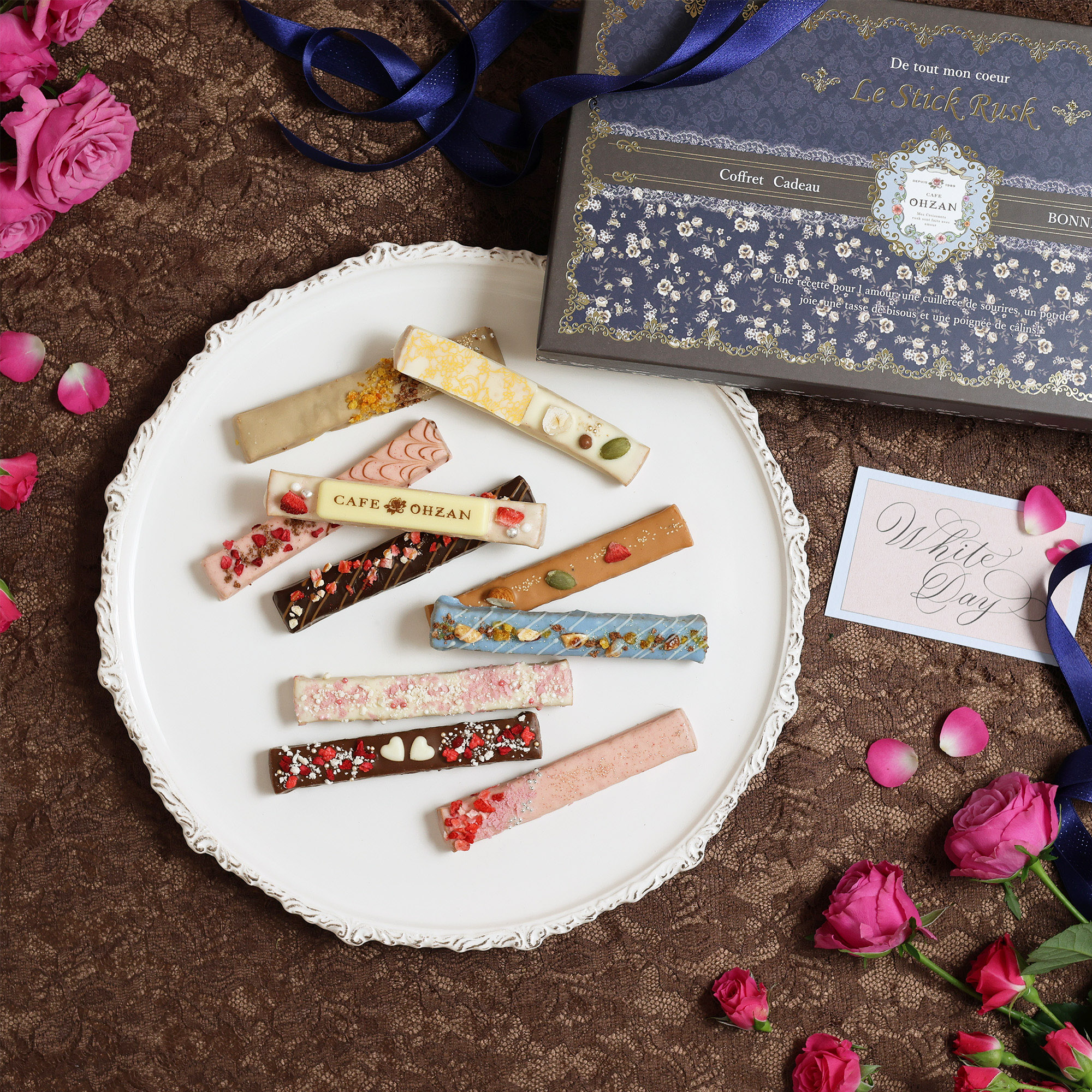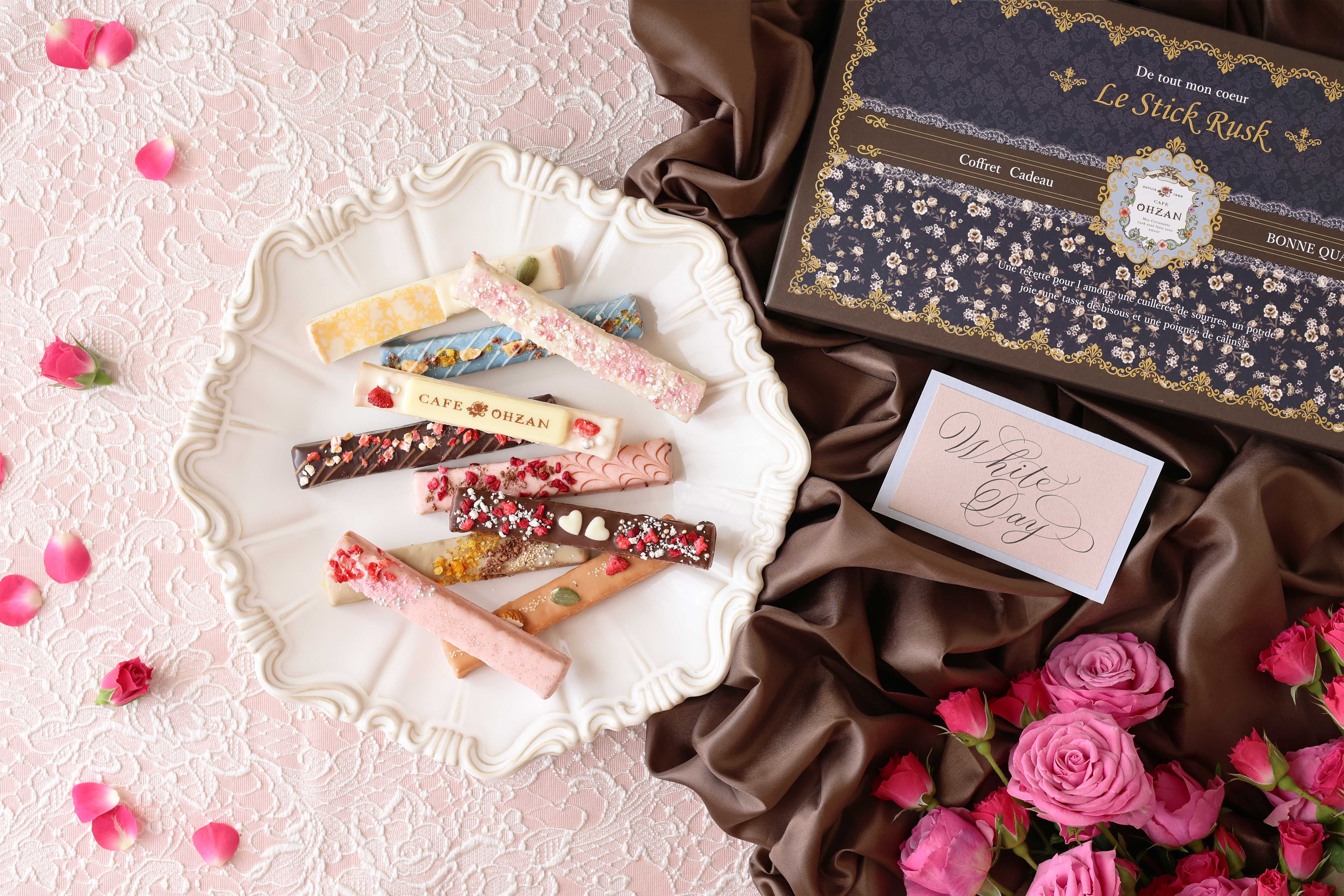 “大人可愛い”をテーマにチョコレートラスクを展開する CAFE OHZAN(カフェオウザン)の、フランス語で「可愛いあなた」と名付けられた期間限定のスティックラスクです。