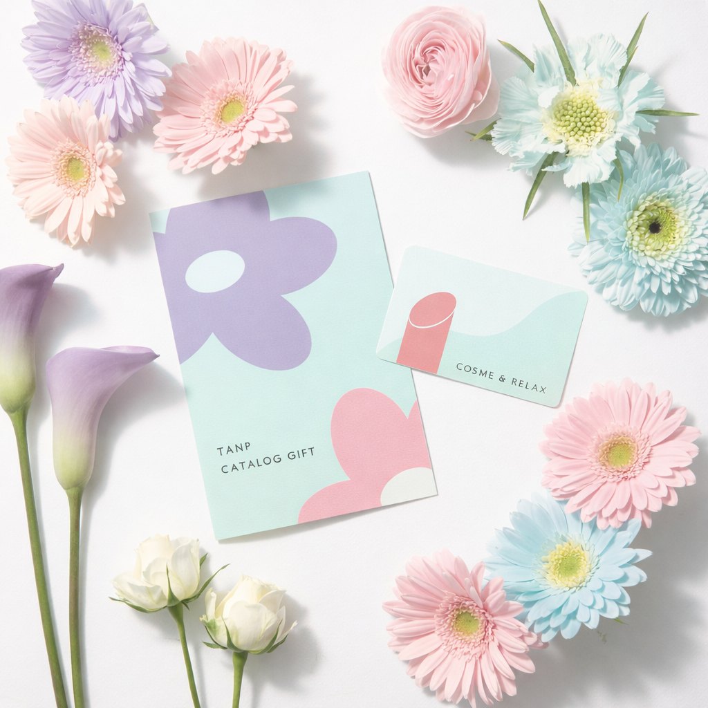 SNIDEL BEAUTYやReFaなど人気ブランドが選べる、タンプオリジナルのカタログギフト"Cosme&Relax"。誕生日やお礼にぴったりな、選ぶ楽しさも届けられるギフトです。美容や癒しアイテムが揃っているので、忙しい毎日にほっと一息つけるご褒美時間をプレゼントできます。