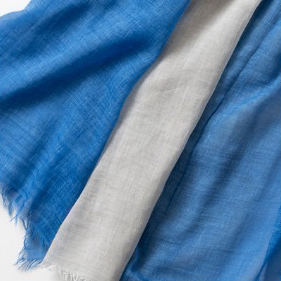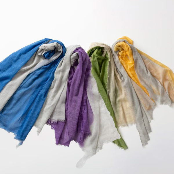 大切な方への贈り物に最適な、肌に優しい綿100%のバイカラー大判ショール。巻き方次第で表情が変わり、いつもの装いをパッと華やかに彩ります。100cm×180cmのたっぷりサイズで、UV・冷房対策やひざ掛けにも大活躍。パープル・ブルー・イエロー・グリーンの4色より、お好きなカラーをお選びいただけます。