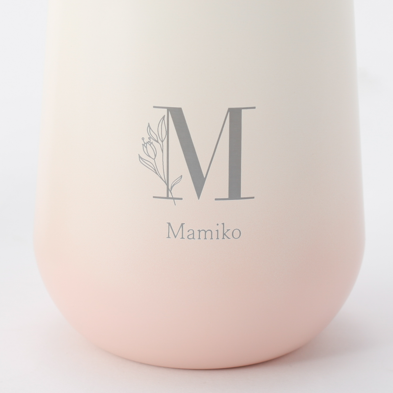 イニシャルと名前を刻印できる、世界に一つだけの特別な贈り物に!グラデーションカラーがかわいい、人気のラウンドサーモタンブラーです。薄いクリーム色をベースに、優しい色合いのグラデーションカラーです。錆びにくく清潔に保ちやすいため、日常使いにおすすめです。