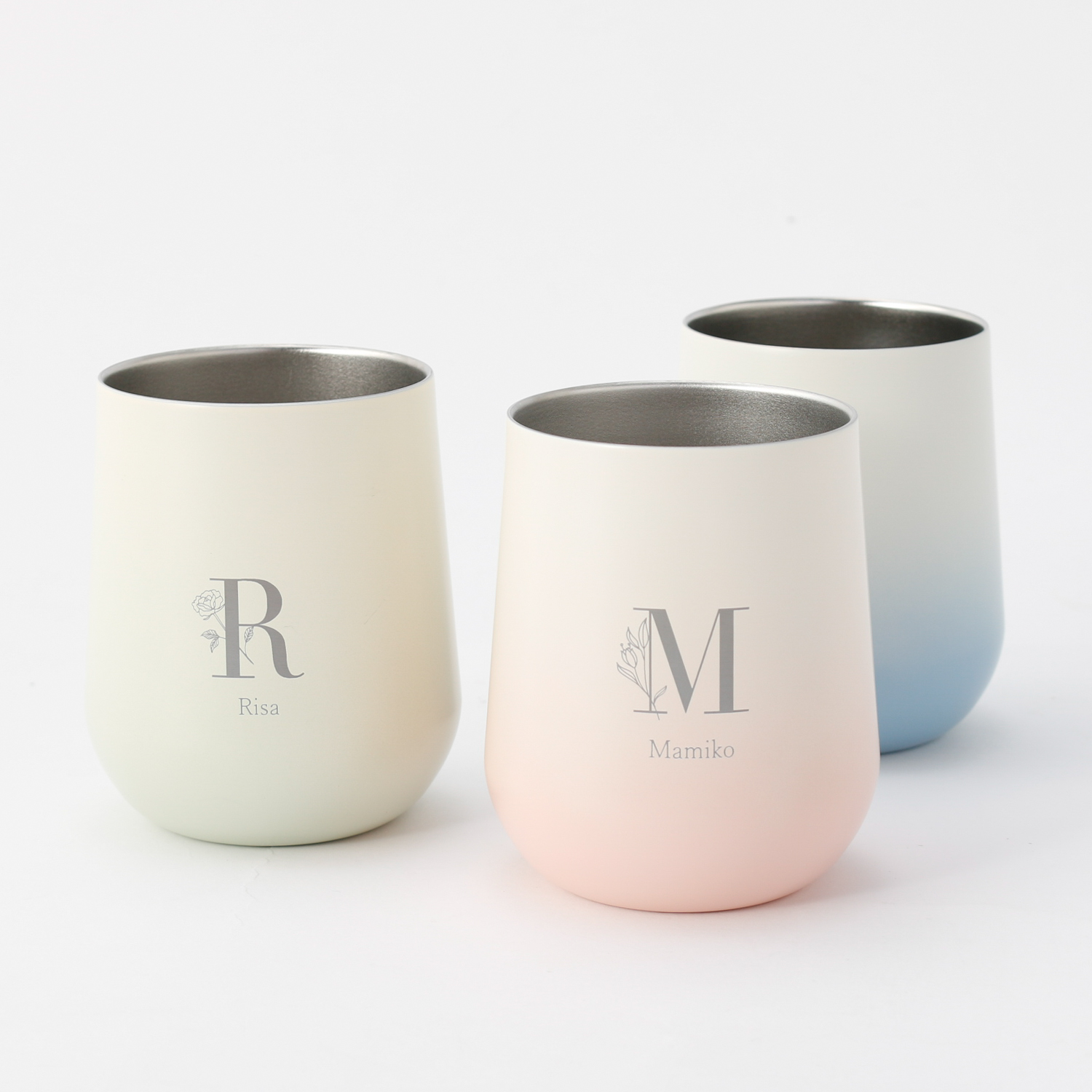 大口注文・法人のお問い合わせはこちらタンブラーにはイニシャルとお名前の刻印が可能。 実用的で喜ばれる名入れギフトとしておすすめです。