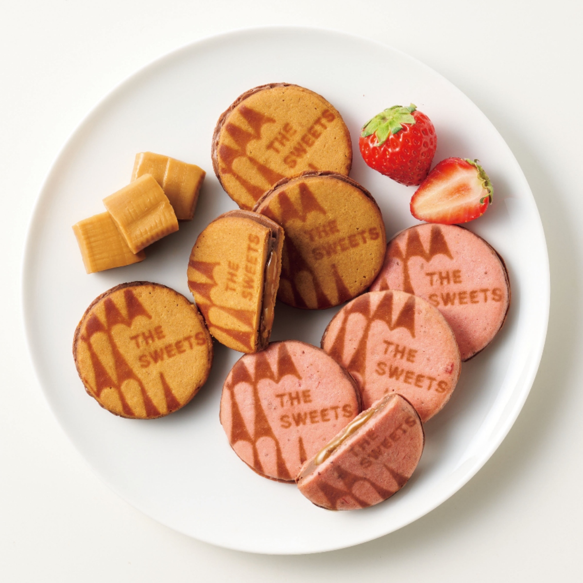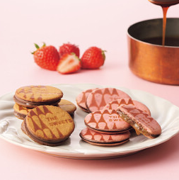 大口注文・法人のお問い合わせはこちらバター香るクッキーから、とろりと溢れ出すキャラメルとチョコレート。定番の美味しさと、心華やぐ苺の味わい。二つの個性が詰まった、大人のためのキャラメルサンドクッキーをお届けします。 一つひとつ丁寧に個包装されているので、手土産やご挨拶ギフトにぴったりです。