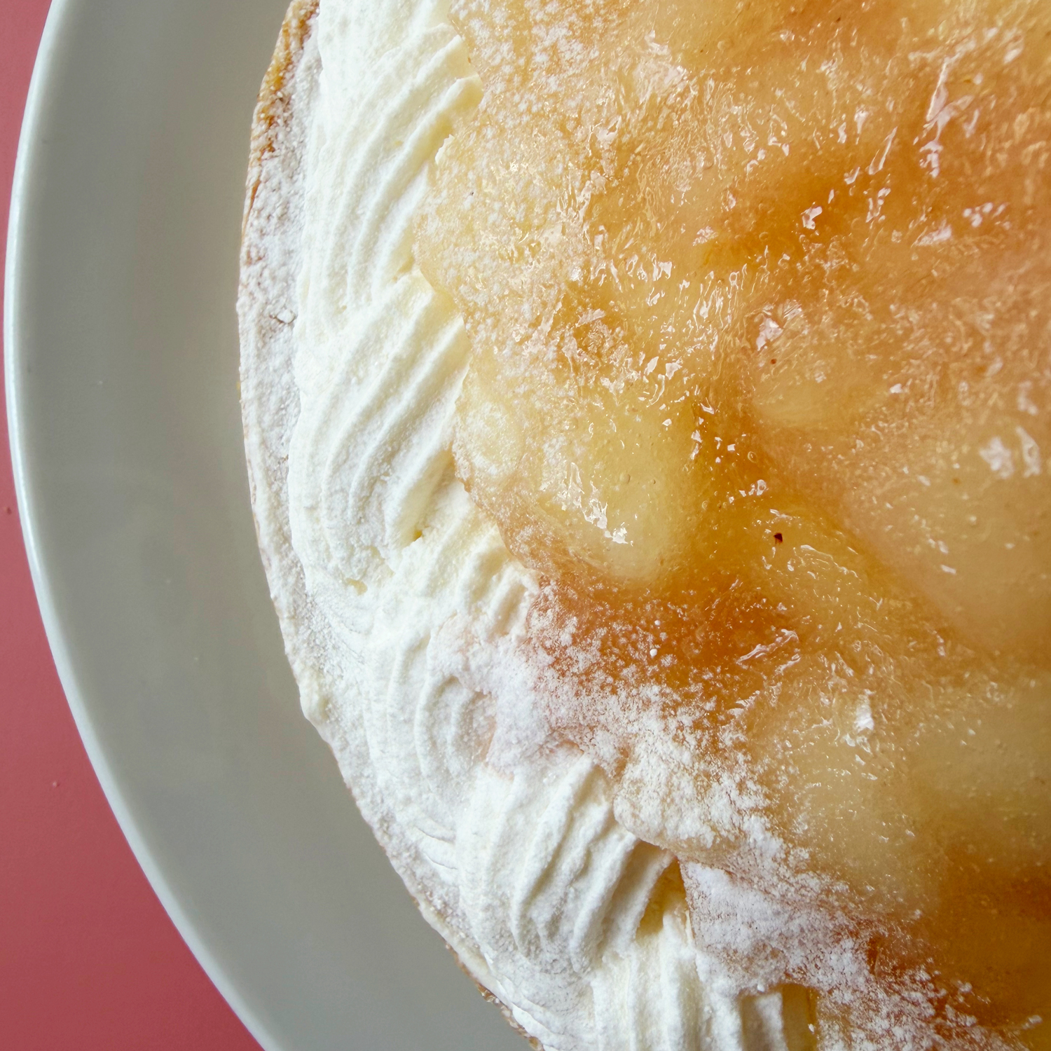 ザクザクタルトは九州長崎平戸島育ちの希少全粒粉小麦配合。厳選素材のバター風味とアーモンド香るしっとりクレームダマンド上に、コクあるチーズムースクリーム。桃色混じる白桃だけ贅沢に飾り、白と淡い桃色グラデーションが美しい、手仕事丁寧なおいしさをぜひお召し上がりください。
