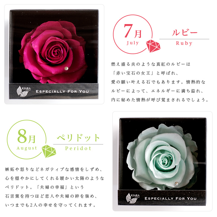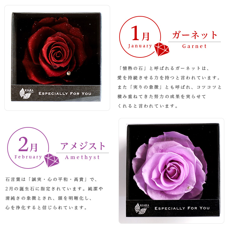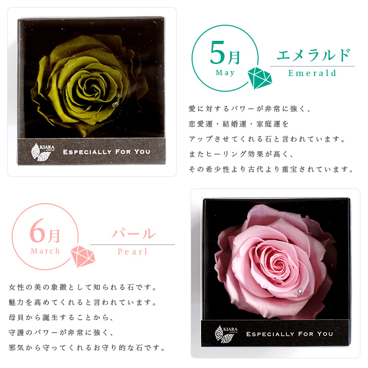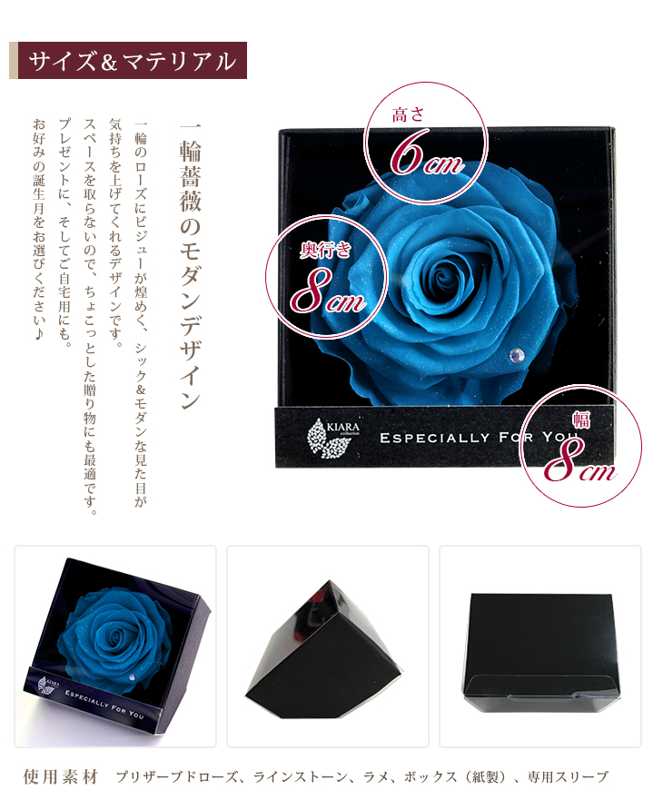 | 素材 | プリザーブドローズ、ラインストーン、ラメ、ボックス(紙製)、専用スリーブ |