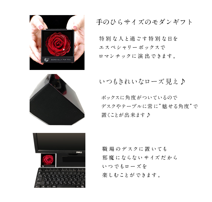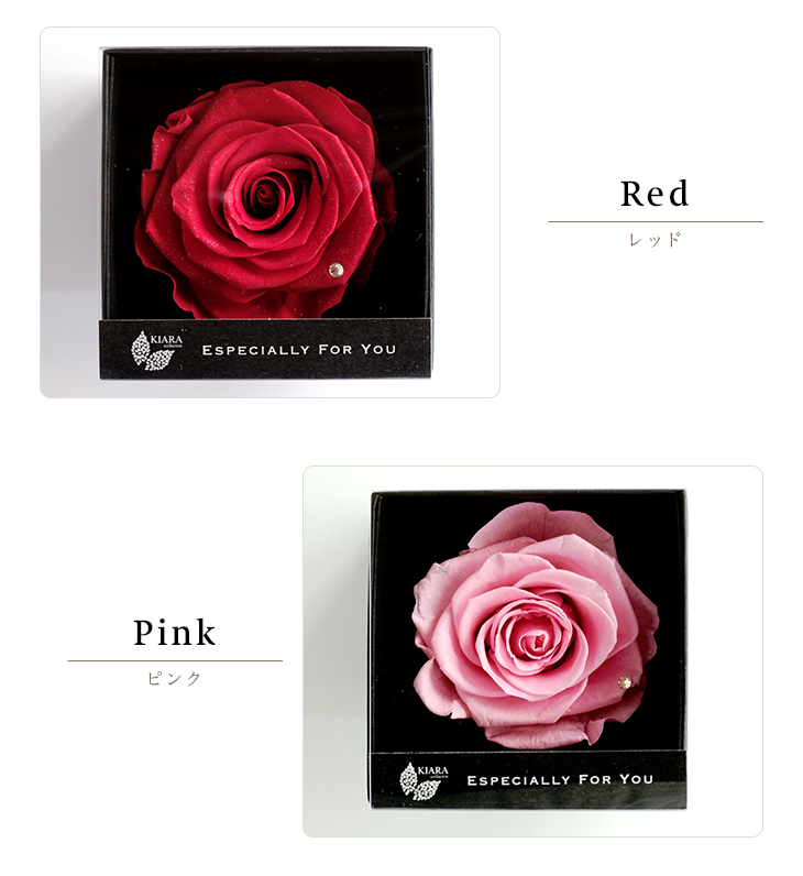 | 素材 | プリザーブドローズ、ラインストーン、ラメ、ボックス(紙製)、専用スリーブ |